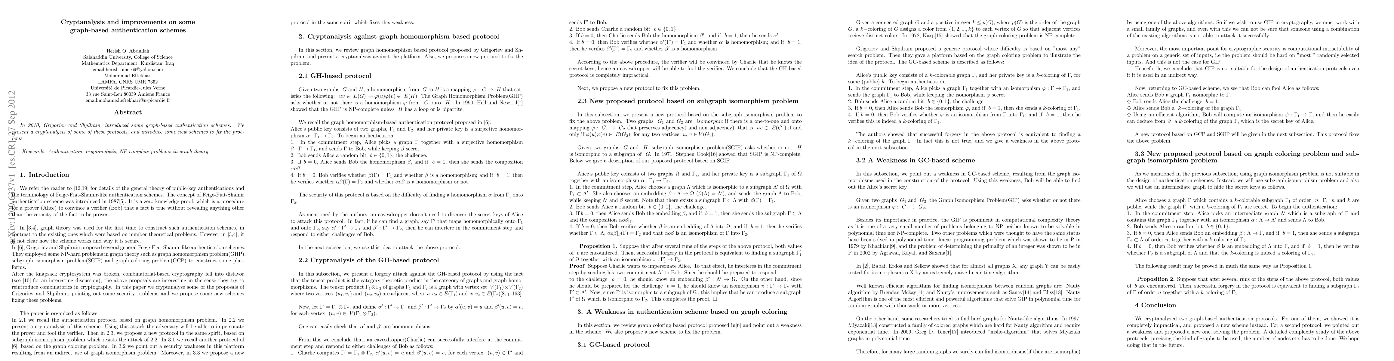 This paper analyzes vulnerabilities in graph-based authentication schemes proposed by Grigoriev and Shpilrain in 2010, and proposes improved protocols to address these weaknesses. The new schemes aim to enhance security and reliability in graph-based authentication methods.