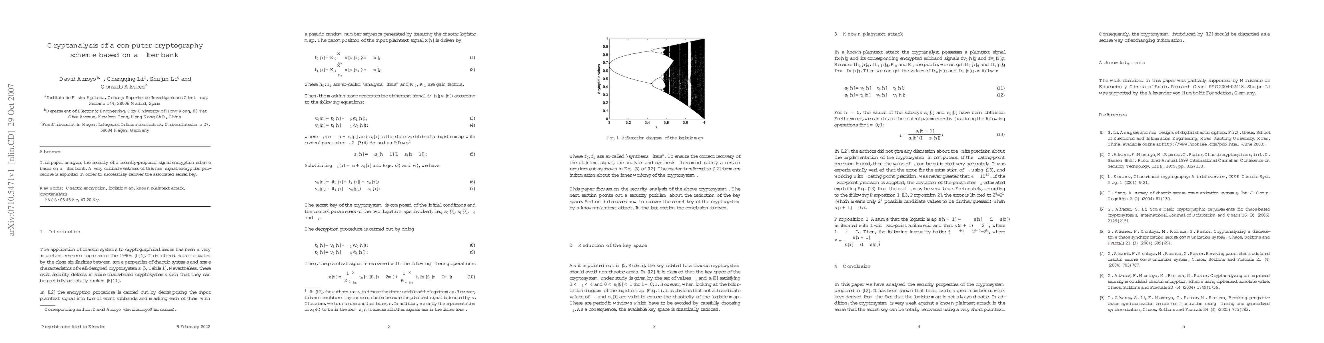 This paper reveals a critical flaw in a new signal encryption scheme using filter banks, enabling the recovery of the secret key. The methodology involves cryptanalysis, leading to significant implications for the scheme's security.