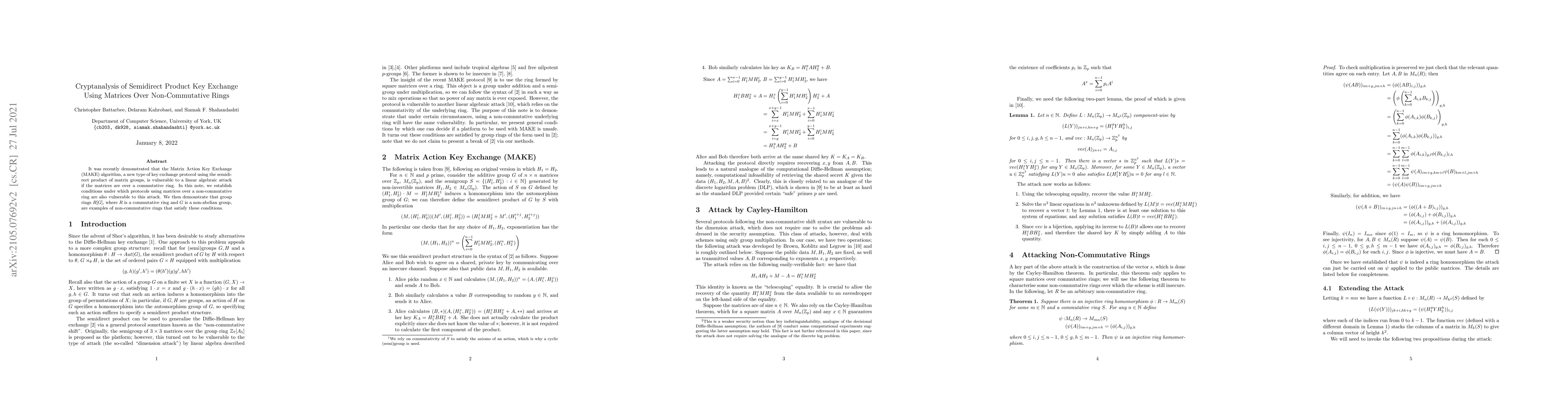 It was recently demonstrated that the Matrix Action Key Exchange (MAKE) algorithm, a new type of key exchange protocol using the semidirect product of matrix groups, is vulnerable to a linear algebraic attack if the matrices are over a commutative ring. In this note, we establish conditions under which protocols using matrices over a non-commutative ring are also vulnerable to this attack. We then demonstrate that group rings $R[G]$ are examples of non-commutative rings that satisfy these conditions.