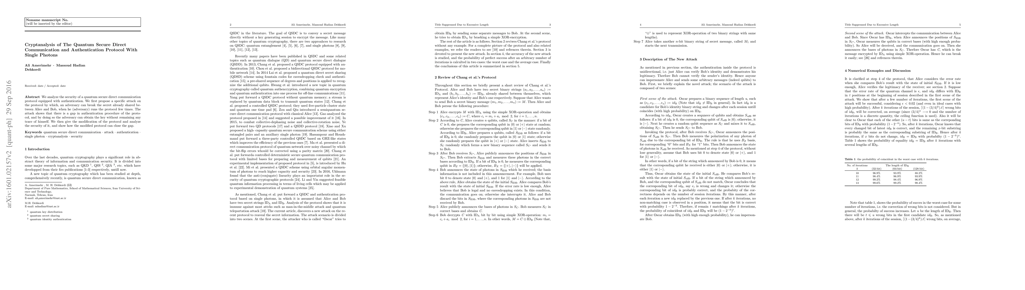 This paper analyzes a quantum secure direct communication protocol with authentication, revealing a specific attack that allows an adversary to break the shared secret by repeatedly running the protocol. The authors propose modifications to the protocol to close the identified security gap.