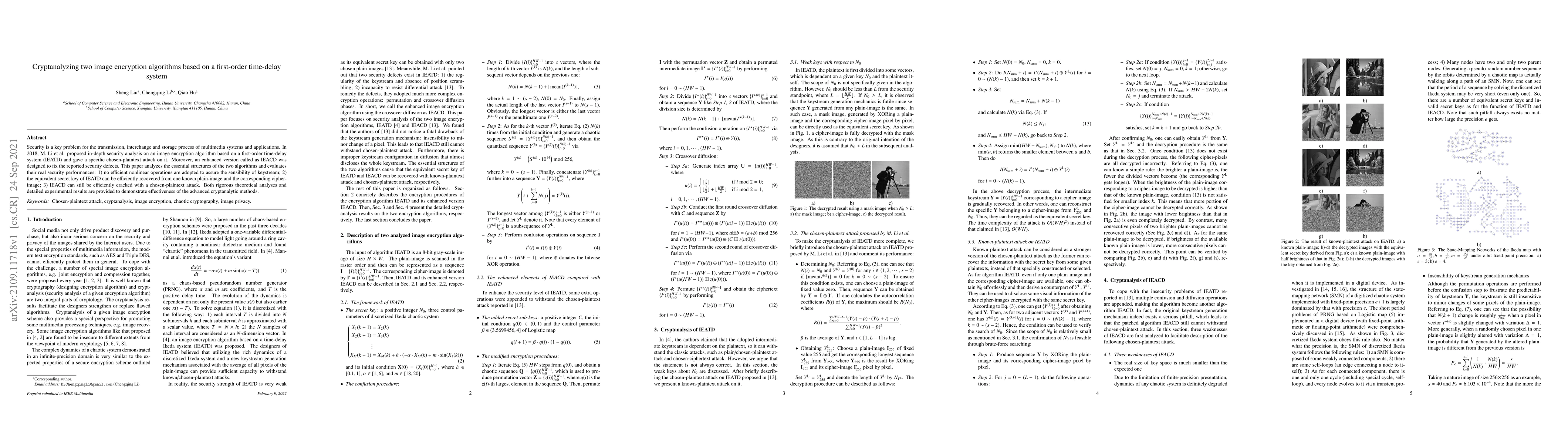 Researchers analyzed two image encryption algorithms, finding that they can be efficiently cracked with a chosen-plaintext attack, compromising their security.