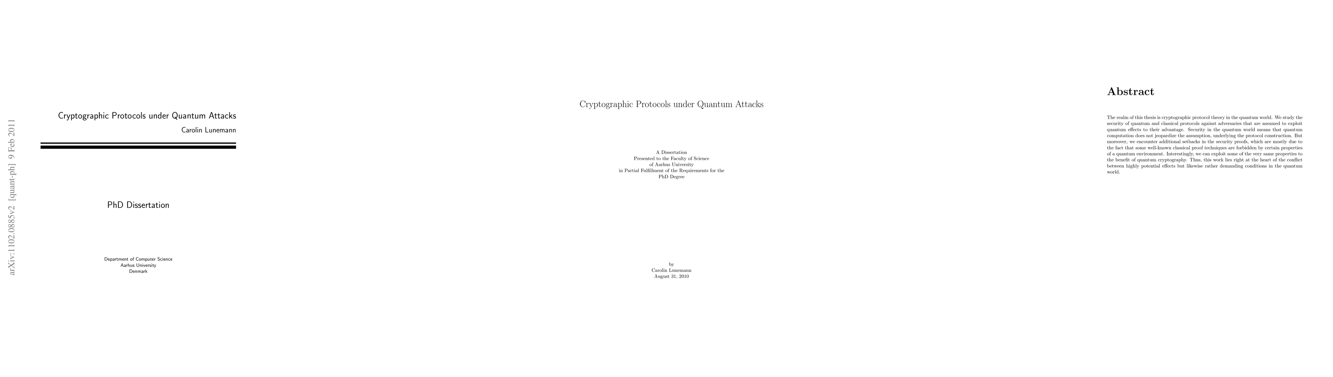 The realm of this thesis is cryptographic protocol theory in the quantum world. We study the security of quantum and classical protocols against adversaries that are assumed to exploit quantum effects to their advantage. Security in the quantum world means that quantum computation does not jeopardize the assumption, underlying the protocol construction. But moreover, we encounter additional setbacks in the security proofs, which are mostly due to the fact that some well-known classical proof techniques are forbidden by certain properties of a quantum environment. Interestingly, we can exploit some of the very same properties to the benefit of quantum cryptography. Thus, this work lies right at the heart of the conflict between highly potential effects but likewise rather demanding conditions in the quantum world.
