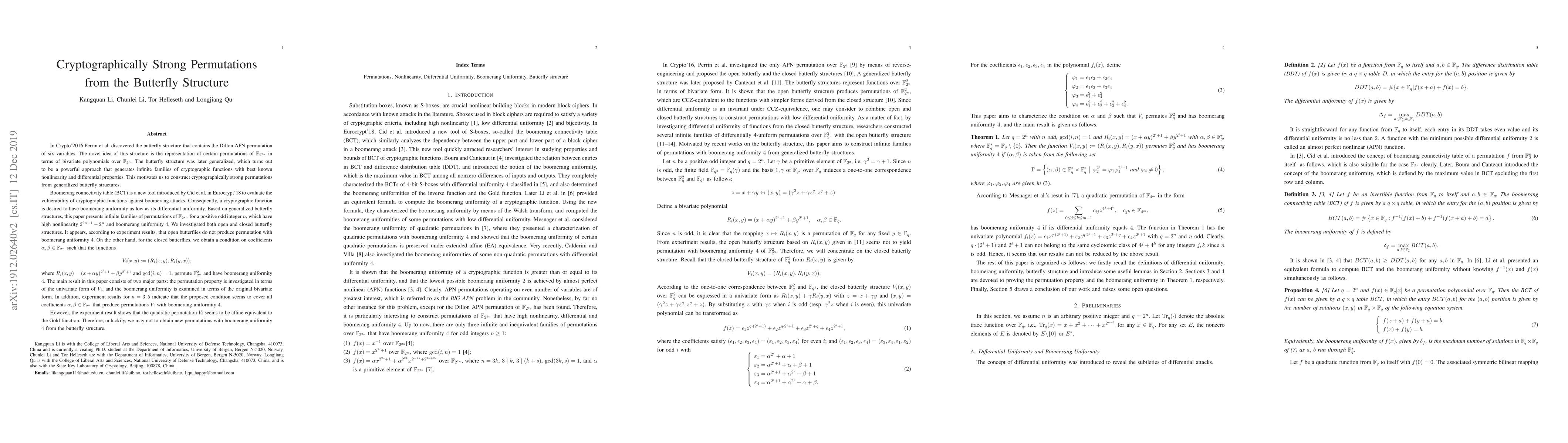 In this paper, we present infinite families of permutations of $\mathbb{F}_{2^{2n}}$ with high nonlinearity and boomerang uniformity $4$ from generalized butterfly structures. Both open and closed butterfly structures are considered. It appears, according to experiment results, that open butterflies do not produce permutation with boomerang uniformity $4$. For the closed butterflies, we propose the condition on coefficients $\alpha, \beta \in \mathbb{F}_{2^n}$ such that the functions $$V_i := (R_i(x,y), R_i(y,x))$$ with $R_i(x,y)=(x+\alpha y)^{2^i+1}+\beta y^{2^i+1}$ are permutations of $\mathbb{F}_{2^n}^2$ with boomerang uniformity $4$, where $n\geq 1$ is an odd integer and $\gcd(i, n)=1$. The main result in this paper consists of two major parts: the permutation property of $V_i$ is investigated in terms of the univariate form, and the boomerang uniformity is examined in terms of the original bivariate form. In addition, experiment results for $n=3, 5$ indicates that the proposed condition seems to cover all coefficients $\alpha, \beta \in \mathbb{F}_{2^n}$ that produce permutations $V_i$ with boomerang uniformity $4$. However, the experiment result shows that the quadratic permutation $V_i$ seems to be affine equivalent to the Gold function. Therefore, unluckily, we may not to obtain new permutations with boomerang uniformity $4$ from the butterfly structure.