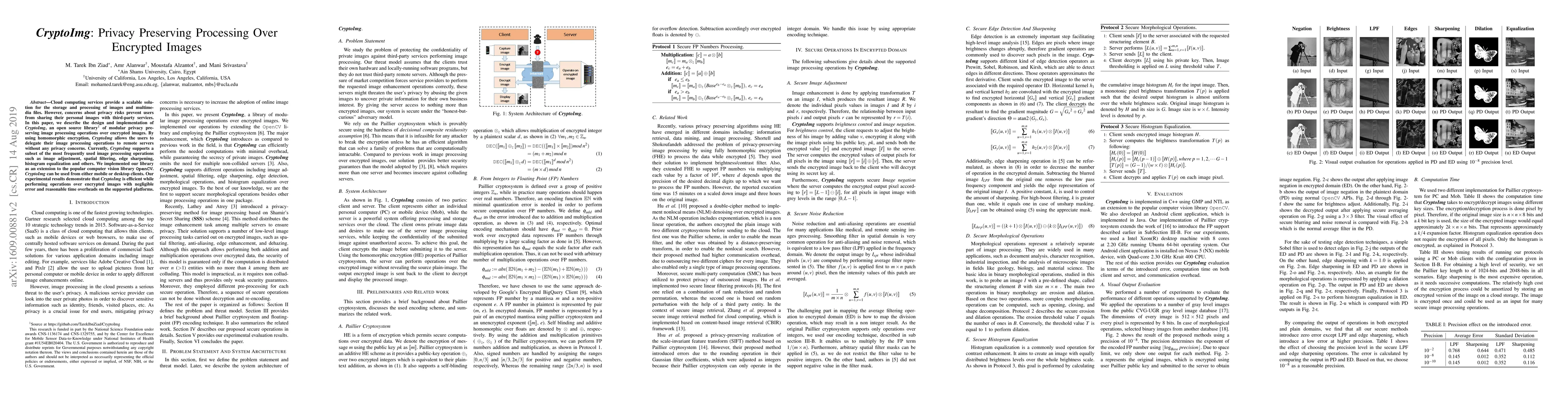 CryptoImg is an open-source library enabling privacy-preserving image processing on encrypted images using homomorphic encryption. It extends OpenCV to support operations like image adjustment and filtering, ensuring user privacy while delegating processing to remote servers.