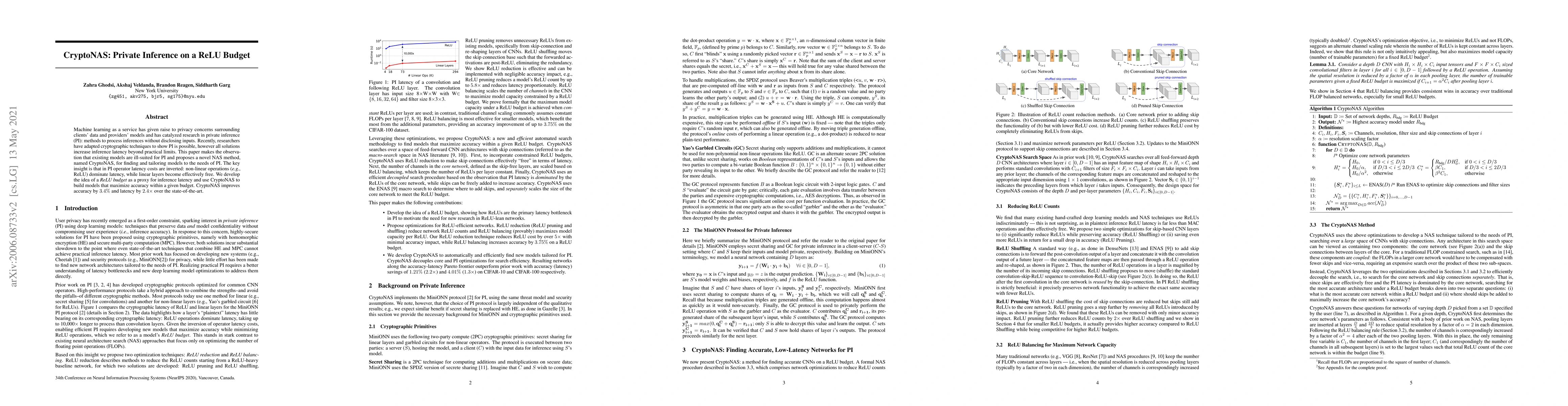 CryptoNAS proposes a novel neural architecture search method to optimize models for private inference, focusing on minimizing latency by prioritizing non-linear operations like ReLU. This approach achieves a 3.4% improvement in accuracy and a 2.4x reduction in latency compared to existing solutions.