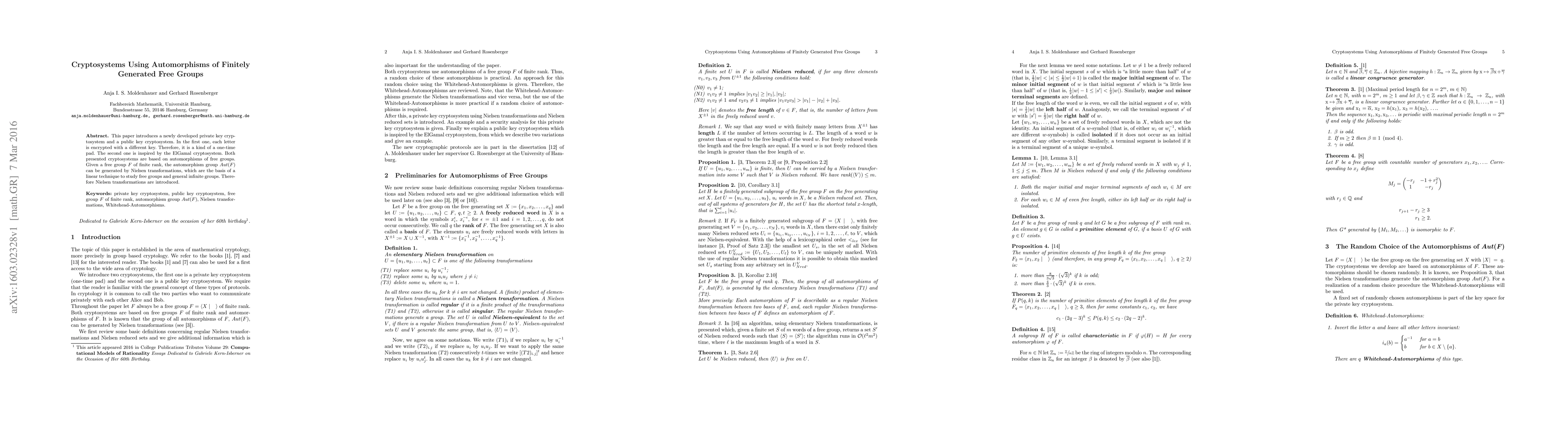 This paper presents two novel cryptosystems based on automorphisms of finitely generated free groups: a private key one functioning like a one-time pad and a public key system inspired by ElGamal, both utilizing Nielsen transformations for encryption.