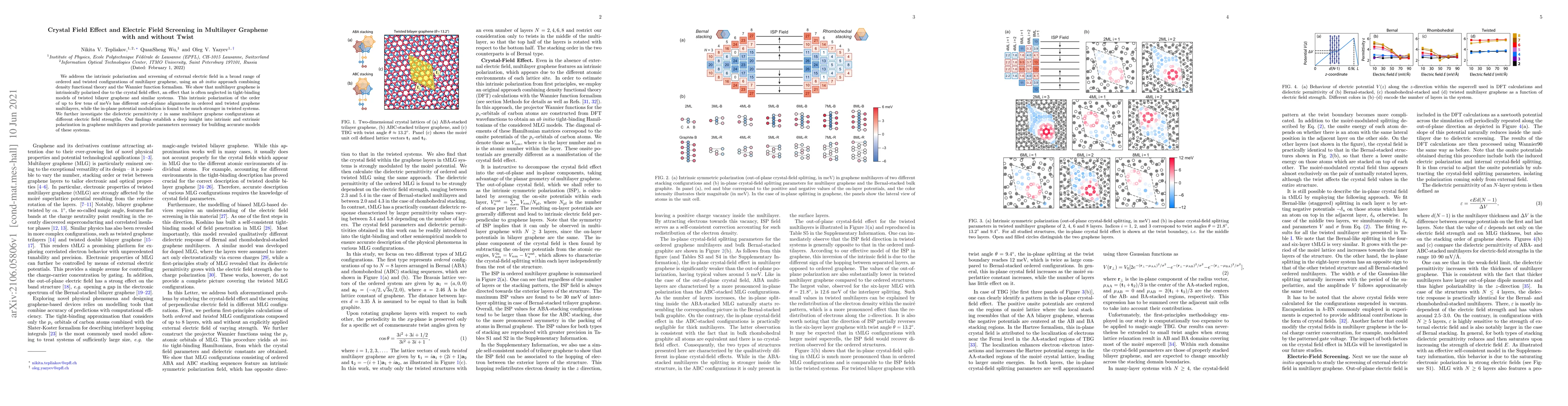 We address the intrinsic polarisation and screening of external electric field in a broad range of ordered and twisted configurations of multilayer graphene, using an ab initio approach combining density functional theory and the Wannier function formalism. We show that multilayer graphene is intrinsically polarized due to the crystal field effect, an effect that is often neglected in tight-binding models of twisted bilayer graphene and similar systems. This intrinsic polarization of the order of up to few tens of meVs has different out-of-plane alignments in ordered and twisted graphene multilayers, while the in-plane potential modulation is found to be much stronger in twisted systems. We further investigate the dielectric permittivity $\varepsilon$ in same multilayer graphene configurations at different electric field strengths. Our findings establish a deep insight into intrinsic and extrinsic polarization in graphene multilayers and provide parameters necessary for building accurate models of these systems.