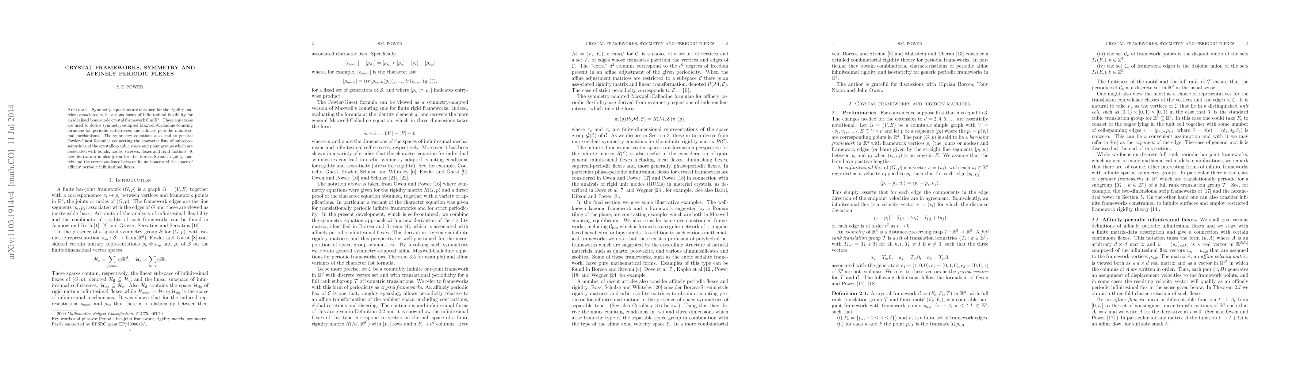 Symmetry equations are obtained for the rigidity matrices associated with various forms of infinitesimal flexibility for an idealised bond-node crystal framework $\C$ in $\bR^d$. These equations are used to derive symmetry-adapted Maxwell-Calladine counting formulae for periodic self-stresses and affinely periodic infinitesimal mechanisms. The symmetry equations also lead to general Fowler-Guest formulae connecting the character lists of subrepresentations of the crystallographic space and point groups which are associated with bonds, nodes, stresses, flexes and rigid motions. A new derivation is also given for the Borcea-Streinu rigidity matrix and the correspondence between its nullspace and the space of affinely periodic infinitesimal flexes.