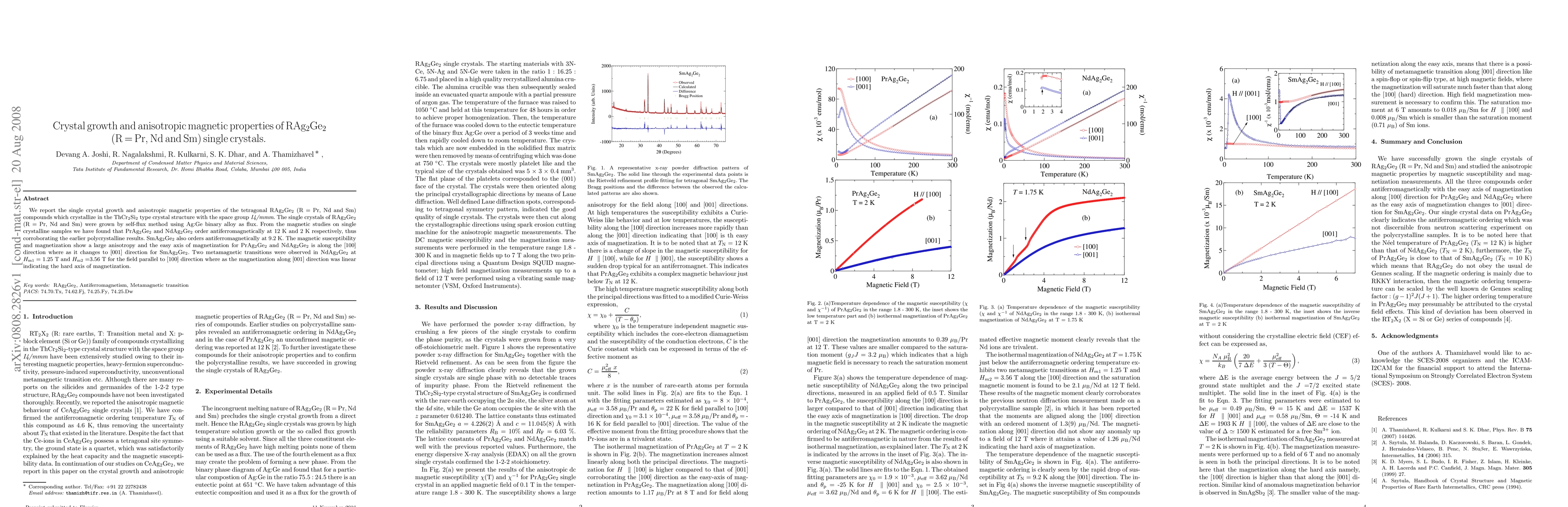 This study reports the growth of single crystals of RAg$_2$Ge$_2$ (R = Pr, Nd, Sm) and investigates their anisotropic magnetic properties. The compounds exhibit antiferromagnetic ordering at specific temperatures, with distinct magnetic anisotropy and metamagnetic transitions observed in NdAg$_2$Ge$_2$.