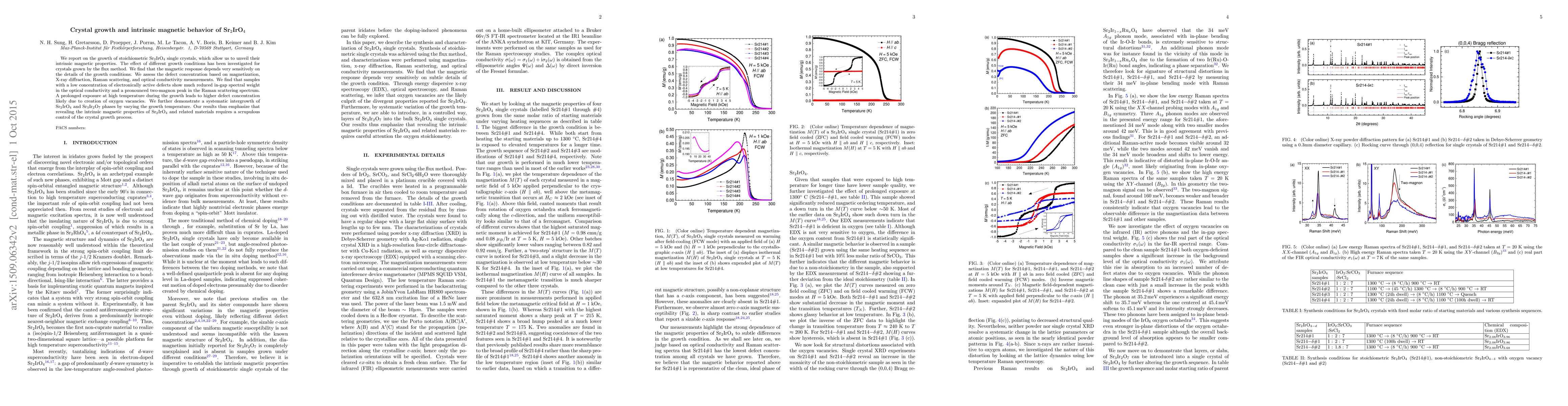 We report on the growth of stoichiometric Sr$_2$IrO$_4$ single crystals, which allow us to unveil their intrinsic magnetic properties. The effect of different growth conditions has been investigated for crystals grown by the flux method. We find that the magnetic response depends very sensitively on the details of the growth conditions. We assess the defect concentration based on magnetization, X-ray diffraction, Raman scattering, and optical conductivity measurements. We find that samples with a low concentration of electronically active defects show much reduced in-gap spectral weight in the optical conductivity and a pronounced two-magnon peak in the Raman scattering spectrum. A prolonged exposure at high temperature during the growth leads to higher defect concentration likely due to creation of oxygen vacancies. We further demonstrate a systematic intergrowth of Sr$_2$IrO$_4$ and Sr$_3$Ir$_2$O$_7$ phases by varying the growth temperature. Our results thus emphasize that revealing the intrinsic magnetic properties of Sr$_2$IrO$_4$ and related materials requires a scrupulous control of the crystal growth process.