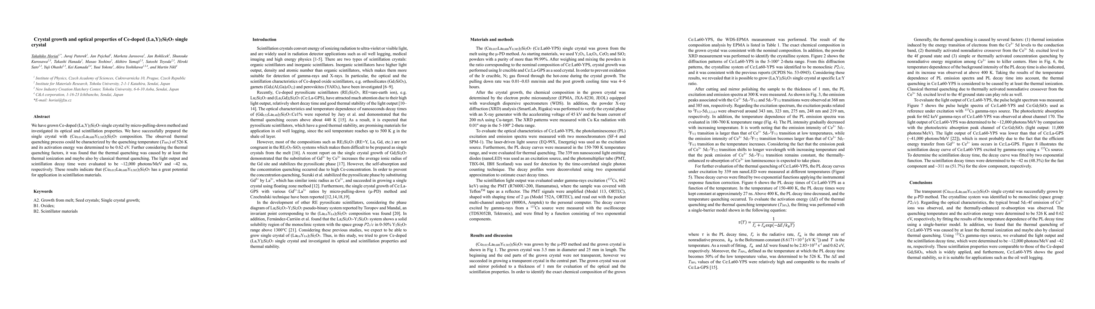This paper reports the growth of Ce-doped (La,Y)$_2$Si$_2$O$_7$ single crystals using the micro-pulling-down method, revealing promising optical properties with a thermal quenching temperature of 526 K and a scintillation decay time of ~42 ns, indicating potential for use in scintillation applications.