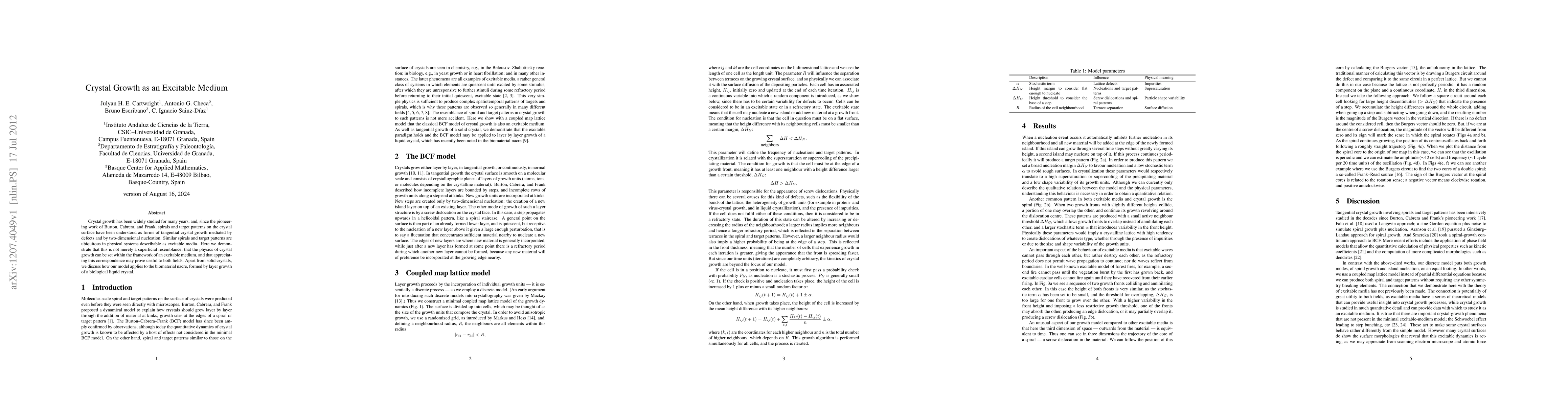 Researchers found that crystal growth can be modeled as an excitable medium, revealing a deeper connection between crystal structures and physical systems with similar properties, such as the biomaterial nacre.