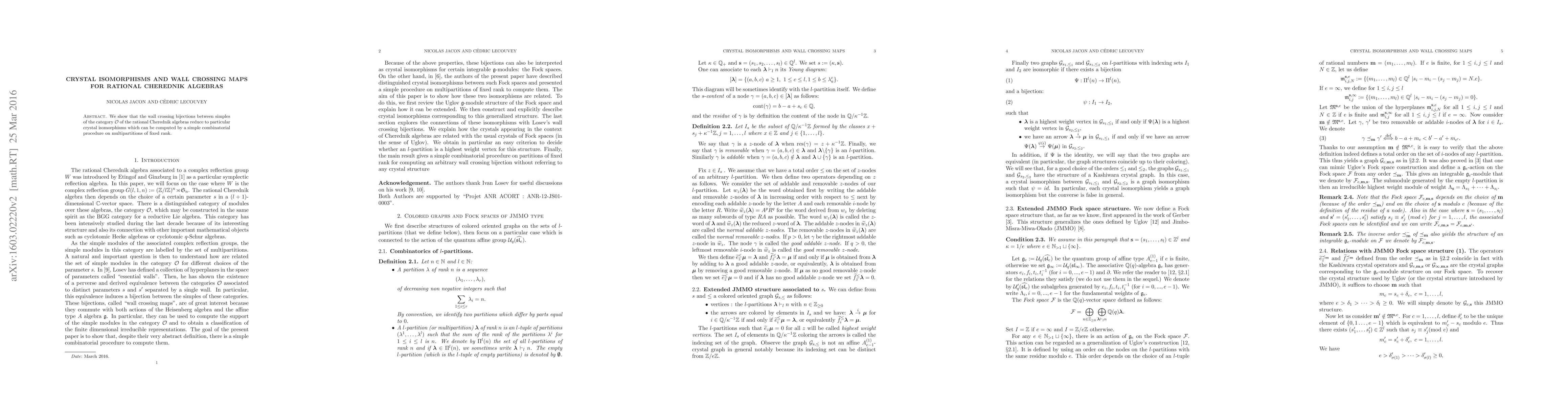 We show that the wall crossing bijections between simples of the category O of the rational Cherednik algebras reduce to particular crystal isomorphisms which can be computed by a simple combinatorial procedure on multipartitions of fixed rank.