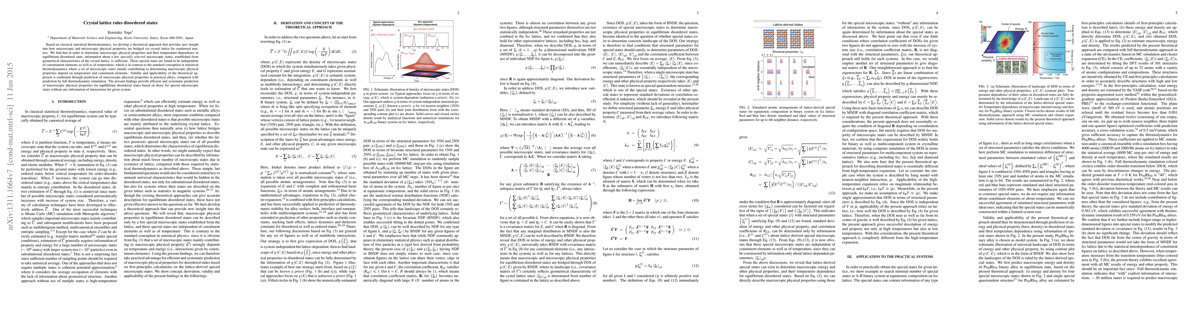 Based on classical statistical thermodynamics, we develop a theoretical approach that provides new insight into how macroscopic and microscopic physical properties are bridged via crystal lattice for condensed mat- ters. We find that in order to determine macroscopic physical properties and their temperature dependence in equilibrium disordered state, information about a few specially selected microscopic states, established from geometrical characteristics of the crystal lattice, is sufficient. These special states are found to be independent of constitument elements as well as of temperature, which is in contrast to the standard conception in statistical thermodyanamics where a set of microscopic states mainly contributing to determining macroscopic physical properties depend on temperature and constituent elements. Validity and applicability of the theoretical ap- proach is confirmed through prediction of macroscopic physical properties in practical alloys, compared with prediction by full thermodynamic simulation. The present findings provide efficient and systematic prediction of macroscopic physical properties for equilibrium disordered states based on those for special microscopic states without any information of interactions for given system.