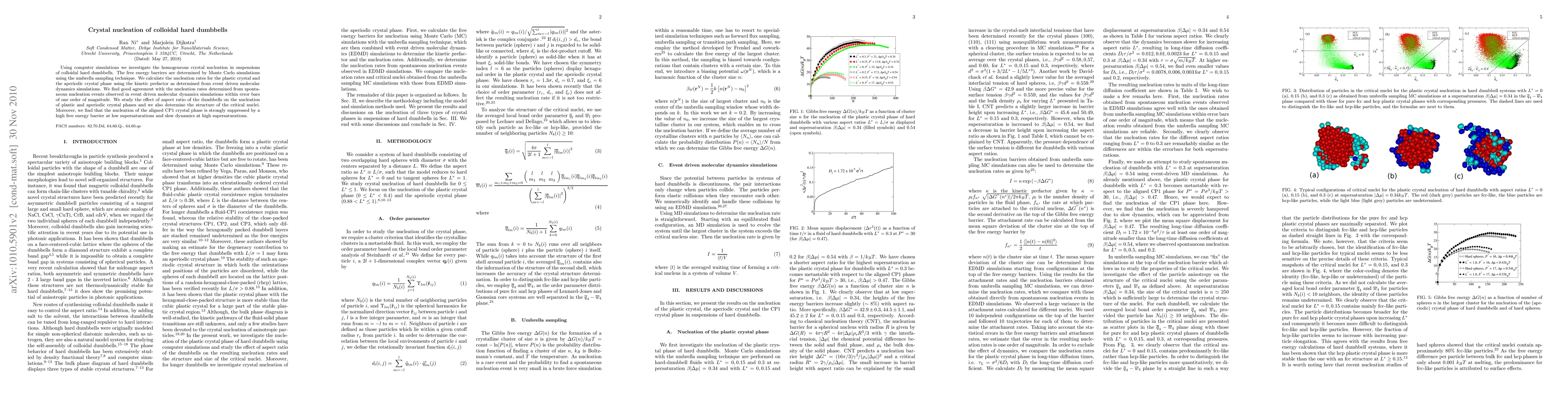 This study uses computer simulations to explore the nucleation of crystals in colloidal hard dumbbell suspensions, determining free energy barriers and nucleation rates via Monte Carlo and molecular dynamics methods. The research reveals significant suppression of the aligned CP1 crystal phase nucleation due to high barriers and slow dynamics.