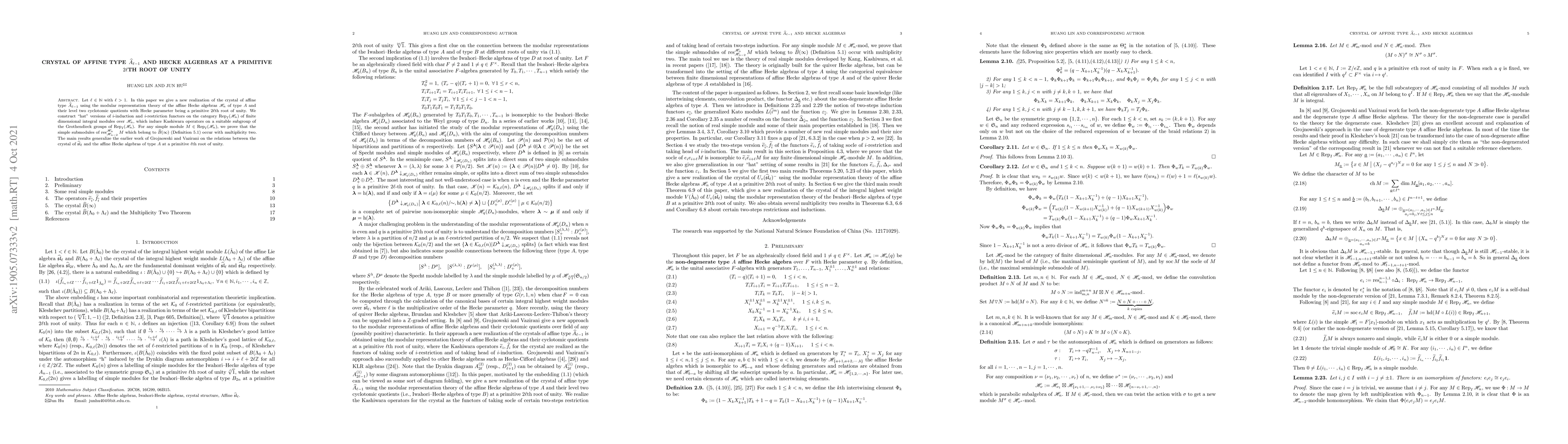 This paper provides a new realization of the crystal of affine $ ilde{ ext{sl}}_{ ext{ ext{l}}}$ using modular representation theory of Hecke algebras, relating it to crystal Kashiwara operators and submodules with multiplicity two.