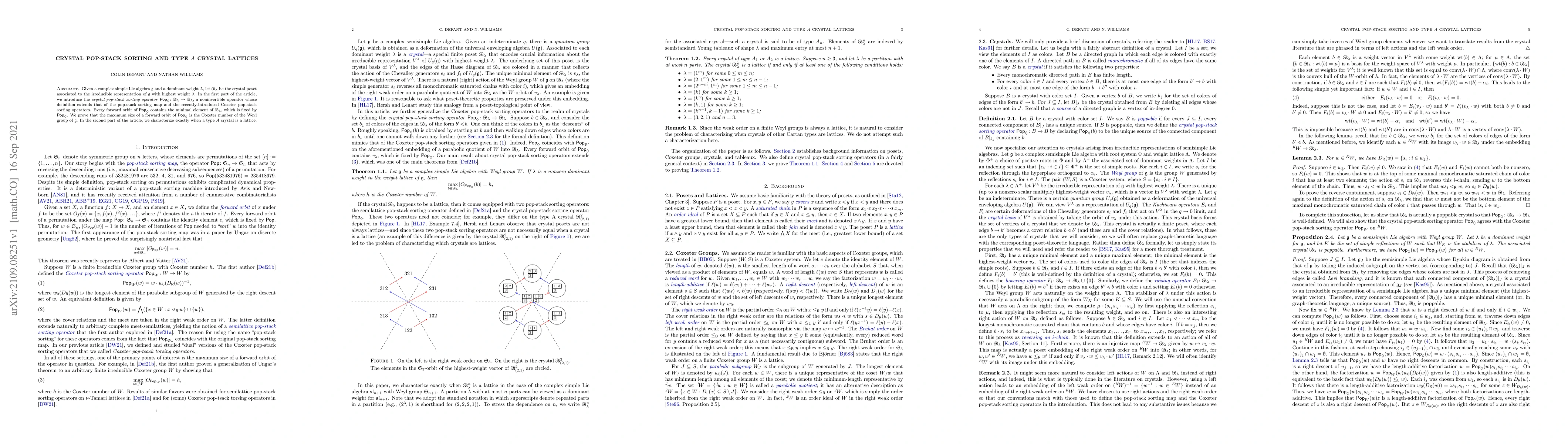 The introduction and analysis of the crystal pop-stack sorting operator $\mathsf{Pop}_{\lozenge}$ and its properties, along with the characterization of type A crystals that are lattices.