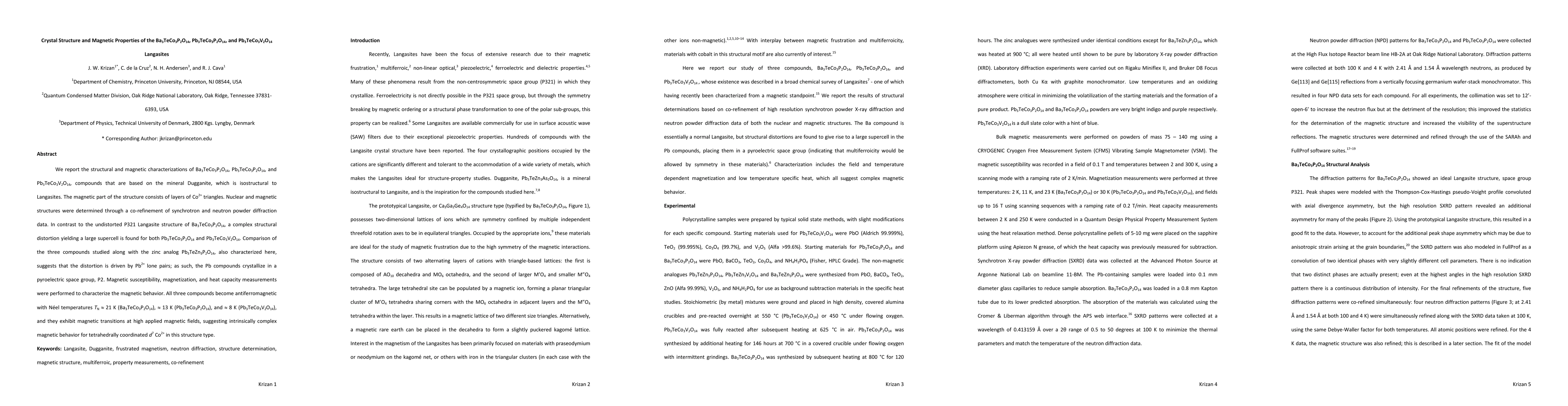 We report the structural and magnetic characterizations of Ba3TeCo3P2O14, Pb3TeCo3P2O14, and Pb3TeCo3V2O14, compounds that are based on the mineral Dugganite, which is isostructural to Langasites. The magnetic part of the structure consists of layers of Co2+ triangles. Nuclear and magnetic structures were determined through a co-refinement of synchrotron and neutron powder diffraction data. In contrast to the undistorted P321 Langasite structure of Ba3TeCo3P2O14, a complex structural distortion yielding a large supercell is found for both Pb3TeCo3P2O14 and Pb3TeCo3V2O14. Comparison of the three compounds studied along with the zinc analog Pb3TeZn3P2O14, also characterized here, suggests that the distortion is driven by Pb2+ lone pairs; as such, the Pb compounds crystallize in a pyroelectric space group, P2. Magnetic susceptibility, magnetization, and heat capacity measurements were performed to characterize the magnetic behavior. All three compounds become antiferromagnetic with N\'eel temperatures TN ~ 21 K (Ba3TeCo3P2O14), ~ 13 K (Pb3TeCo3P2O14), and ~ 8 K (Pb3TeCo3V2O14), and they exhibit magnetic transitions at high applied magnetic fields, suggesting intrinsically complex magnetic behavior for tetrahedrally coordinated d7 Co2+ in this structure type.