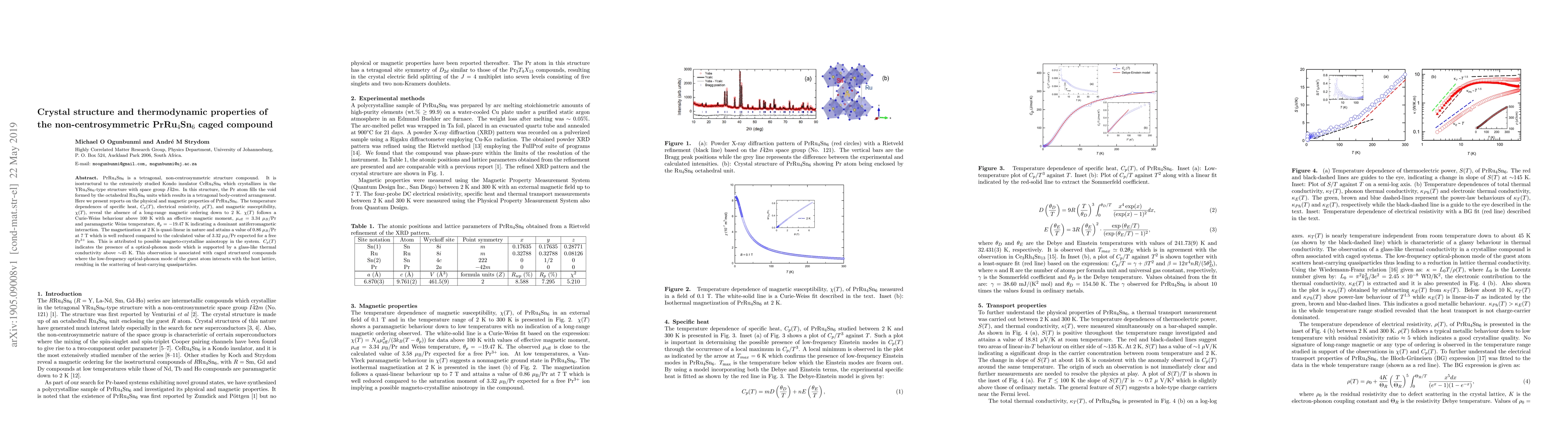 PrRu$_4$Sn$_6$ is a tetragonal, non-centrosymmetric structure compound. It is isostructural to the extensively studied Kondo insulator CeRu$_4$Sn$_6$ which crystallizes in the YRu$_4$Sn$_6$-type structure with space group $I$\={4}2$m$. In this structure, the Pr atom fills the void formed by the octahedral Ru$_4$Sn$_6$ units which results in a tetragonal body-centred arrangement. Here we present reports on the physical and magnetic properties of PrRu$_4$Sn$_6$. The temperature dependences of specific heat, $C_p(T)$, electrical resistivity, $\rho(T)$, and magnetic susceptibility, $\chi(T)$, reveal the absence of a long-range magnetic ordering down to 2 K. $\chi(T)$ follows a Curie-Weiss behaviour above 100 K with an effective magnetic moment, $\mu_\mathrm{eff}$ = 3.34 $\mu_B$/Pr and paramagnetic Weiss temperature, $\theta_p$ = $-$19.47 K indicating a dominant antiferromagnetic interaction. The magnetization at 2 K is quasi-linear in nature and attains a value of 0.86 $\mu_B$/Pr at 7 T which is well reduced compared to the calculated value of 3.32 $\mu_B$/Pr expected for a free Pr$^{3+}$ ion. This is attributed to possible magneto-crystalline anisotropy in the system. $C_p(T)$ indicates the presence of a optical-phonon mode which is supported by a glass-like thermal conductivity above $\sim$45 K. This observation is associated with caged structured compounds where the low-frequency optical-phonon mode of the guest atom interacts with the host lattice, resulting in the scattering of heat-carrying quasiparticles.