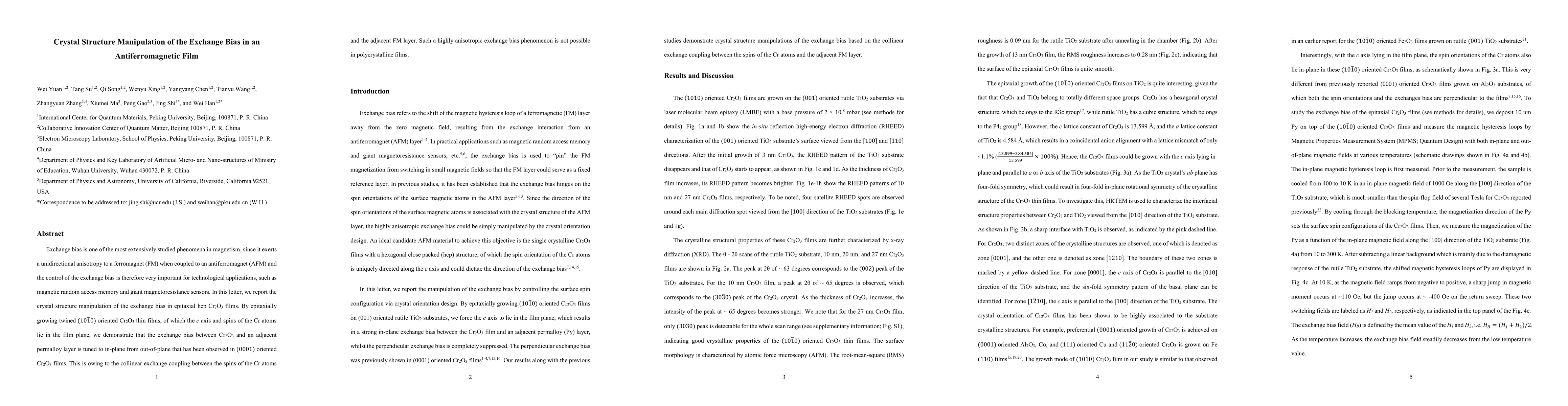 Exchange bias is one of the most extensively studied phenomena in magnetism, since it exerts a unidirectional anisotropy to a ferromagnet (FM) when coupled to an antiferromagnet (AFM) and the control of the exchange bias is therefore very important for technological applications, such as magnetic random access memory and giant magnetoresistance sensors. In this letter, we report the crystal structure manipulation of the exchange bias in epitaxial hcp Cr2O3 films. By epitaxially growing twined (10-10) oriented Cr2O3 thin films, of which the c axis and spins of the Cr atoms lie in the film plane, we demonstrate that the exchange bias between Cr2O3 and an adjacent permalloy layer is tuned to in-plane from out-of-plane that has been observed in (0001) oriented Cr2O3 films. This is owing to the collinear exchange coupling between the spins of the Cr atoms and the adjacent FM layer. Such a highly anisotropic exchange bias phenomenon is not possible in polycrystalline films.
