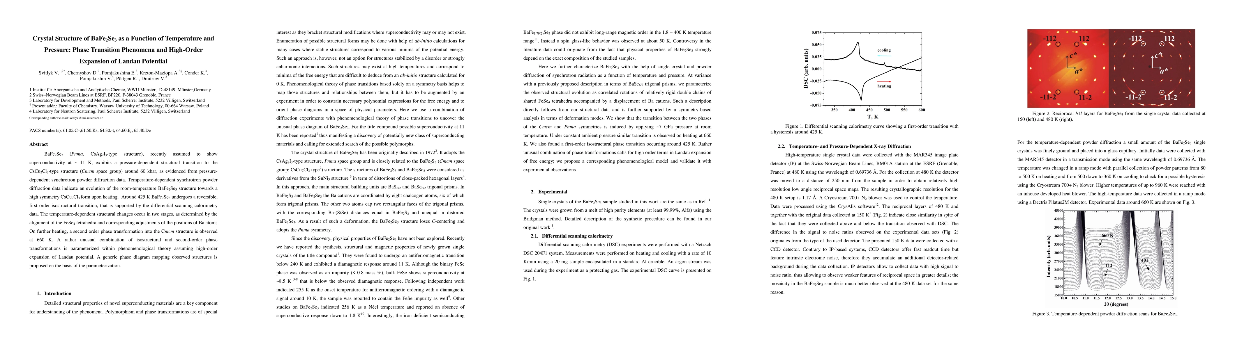 BaFe2Se3 (Pnma, CsAg2I3-type structure), recently assumed to show superconductivity at ~ 11 K, exhibits a pressure-dependent structural transition to the CsCu2Cl3-type structure (Cmcm space group) around 60 kbar, as evidenced from pressure-dependent synchrotron powder diffraction data. Temperature-dependent synchrotron powder diffraction data indicate an evolution of the room-temperature BaFe2Se3 structure towards a high symmetry CsCu2Cl3 form upon heating. Around 425 K BaFe2Se3 undergoes a reversible, first order isostructural transition, that is supported by the differential scanning calorimetry data. The temperature-dependent structural changes occur in two stages, as determined by the alignment of the FeSe4 tetrahedra and corresponding adjustments of the positions of Ba atoms. On further heating, a second order phase transformation into the Cmcm structure is observed at 660 K. A rather unusual combination of isostructural and second-order phase transformations is parameterized within phenomenological theory assuming high-order expansion of Landau potential. A generic phase diagram mapping observed structures is proposed on the basis of the parameterization.
