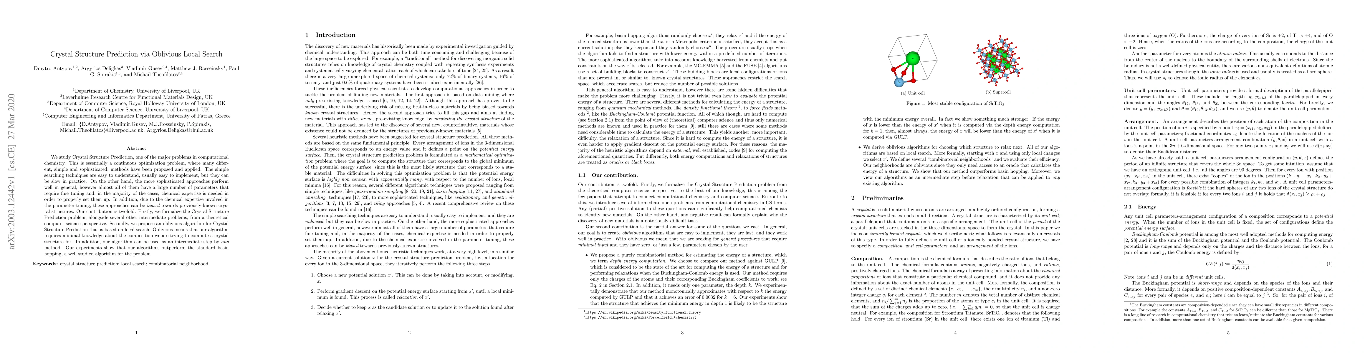 We study Crystal Structure Prediction, one of the major problems in computational chemistry. This is essentially a continuous optimization problem, where many different, simple and sophisticated, methods have been proposed and applied. The simple searching techniques are easy to understand, usually easy to implement, but they can be slow in practice. On the other hand, the more sophisticated approaches perform well in general, however almost all of them have a large number of parameters that require fine tuning and, in the majority of the cases, chemical expertise is needed in order to properly set them up. In addition, due to the chemical expertise involved in the parameter-tuning, these approaches can be {\em biased} towards previously-known crystal structures. Our contribution is twofold. Firstly, we formalize the Crystal Structure Prediction problem, alongside several other intermediate problems, from a theoretical computer science perspective. Secondly, we propose an oblivious algorithm for Crystal Structure Prediction that is based on local search. Oblivious means that our algorithm requires minimal knowledge about the composition we are trying to compute a crystal structure for. In addition, our algorithm can be used as an intermediate step by {\em any} method. Our experiments show that our algorithms outperform the standard basin hopping, a well studied algorithm for the problem.