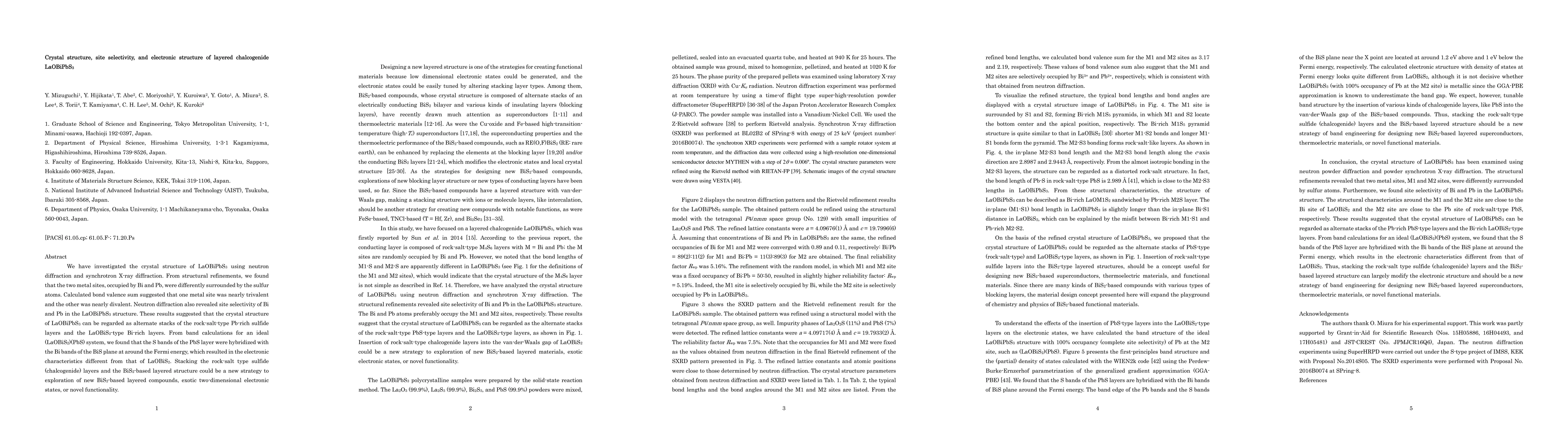 This study reveals the crystal structure and electronic properties of LaOBiPbS3, showing distinct metal site environments and site selectivity of Bi and Pb. The compound features alternating Pb-rich and Bi-rich layers, leading to unique electronic characteristics due to hybridization of S bands with Bi bands near the Fermi level.