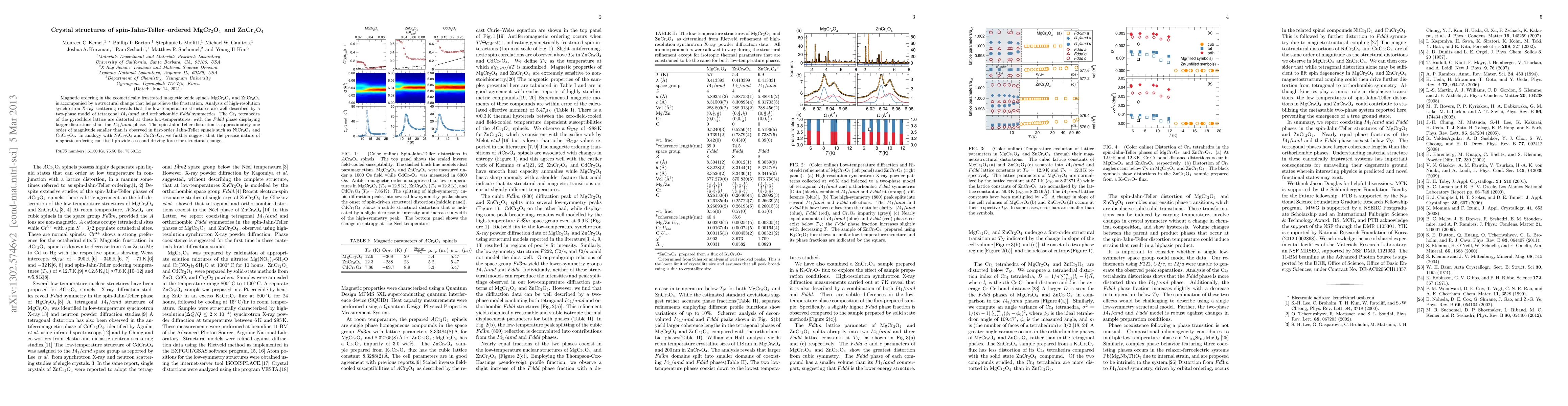 This study investigates the crystal structures of spin-Jahn-Teller ordered MgCr_2O_4 and ZnCr_2O_4, revealing low-temperature structural changes that relieve magnetic frustration through a two-phase model involving tetragonal and orthorhombic symmetries. The Cr_4 tetrahedra distortions are smaller compared to first-order Jahn-Teller spinels.
