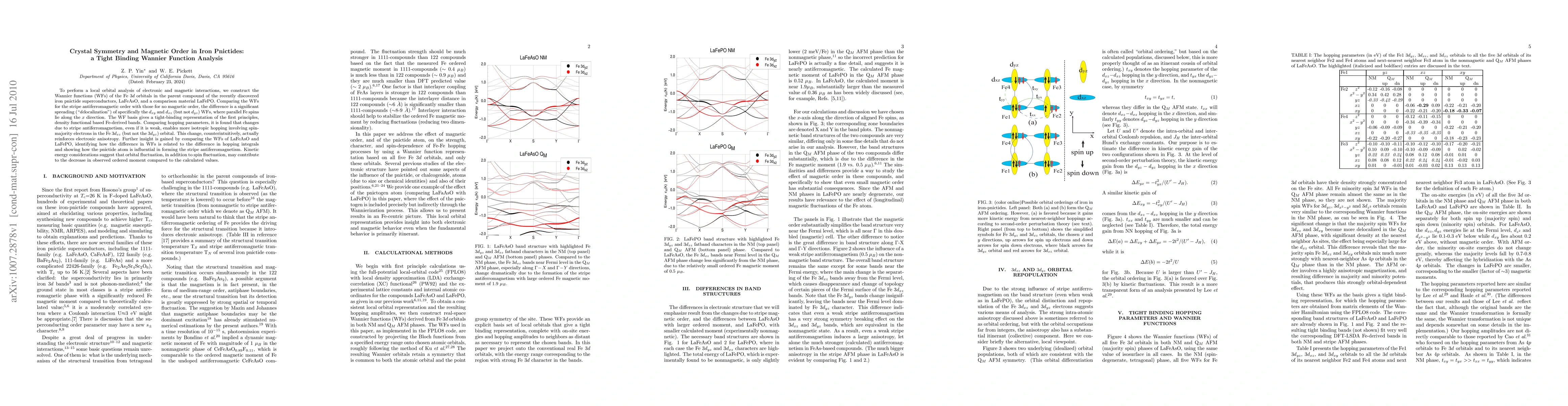 To perform a local orbital analysis of electronic and magnetic interactions, we construct the Wannier functions (WFs) of the Fe $3d$ orbitals in the parent compound of the recently discovered iron pnictide superconductors, LaFeAsO, and a comparison material LaFePO. Comparing the WFs for the stripe antiferromagnetic order with those for no magnetic order, the difference is a significant spreading (``{\it de}localization'') of specifically the $d_{xy}$ and $d_{xz}$ (but not $d_{yz}$) WFs, where parallel Fe spins lie along the $x$ direction. The WF basis gives a tight-binding representation of the first principles, density functional based Fe-derived bands. Comparing hopping parameters, it is found that changes due to stripe antiferromagnetism, even if it is weak, enables more isotropic hopping involving spin-majority electrons in the Fe $3d_{xz}$ (but not the $3d_{yz}$) orbital. This change, counterintuitively, actually reinforces electronic anisotropy. Further insight is gained by comparing the WFs of LaFeAsO and LaFePO, identifying how the difference in WFs is related to the difference in hopping integrals and showing how the pnictide atom is influential in forming the stripe antiferromagnetism. Kinetic energy considerations suggest that orbital fluctuation, in addition to spin fluctuation, may contribute to the decrease in observed ordered moment compared to the calculated values.