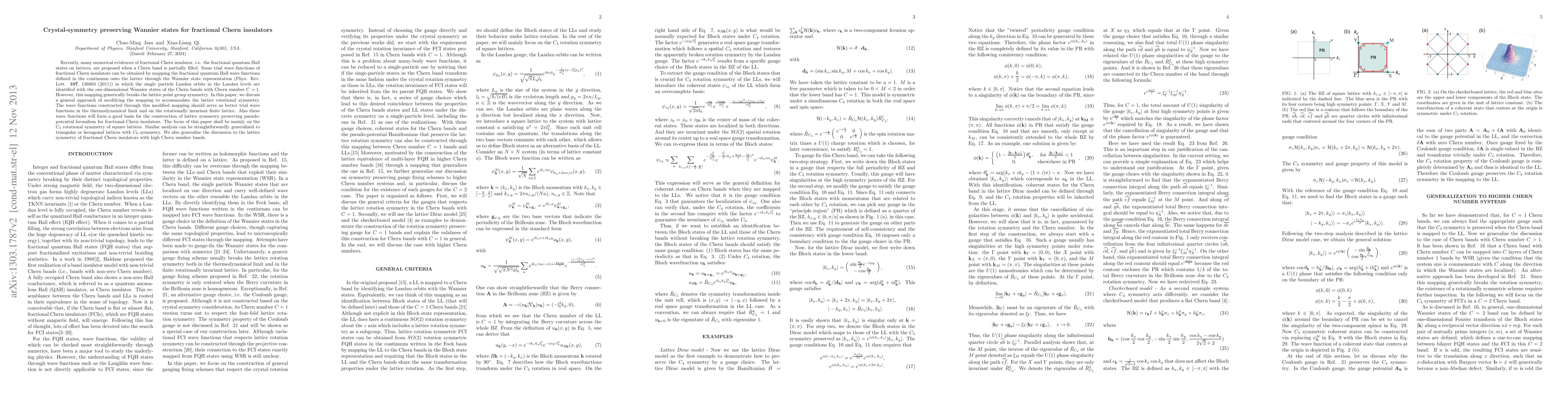 This paper proposes a modified Wannier state representation for fractional Chern insulators that preserves crystal symmetry, particularly focusing on $C_4$ rotational symmetry in square lattices. The proposed approach aims to construct better trial wavefunctions for comparing with numerical evidence and for developing a lattice symmetry preserving pseudo-potential formalism.