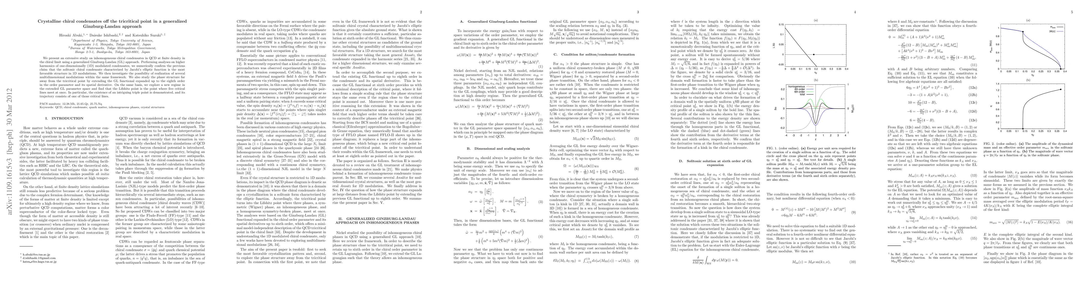 This paper investigates inhomogeneous chiral condensates in QCD at finite density using a generalized Ginzburg-Landau approach, confirming the solitonic chiral condensate as the most favorable structure in one-dimensional modulations. It also explores multidimensional modulations and identifies a new regime where five critical lines meet at the Lifshitz point, revealing an intriguing triple point trajectory.