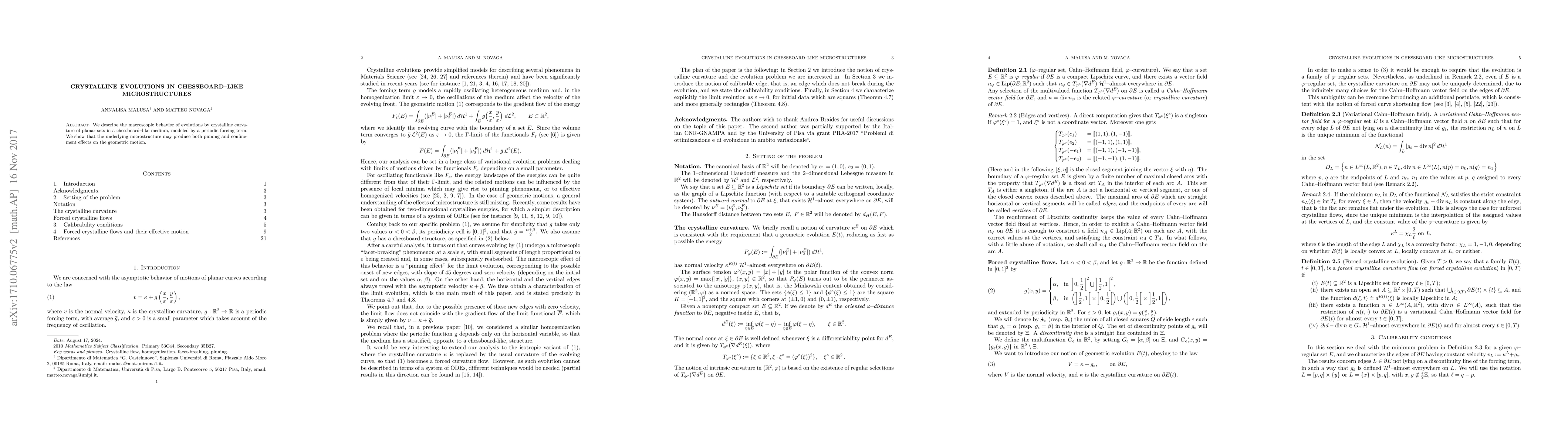 We describe the macroscopic behavior of evolutions by crystalline curvature of planar sets in a chessboard--like medium, modeled by a periodic forcing term. We show that the underlying microstructure may produce both pinning and confinement effects on the geometric motion.