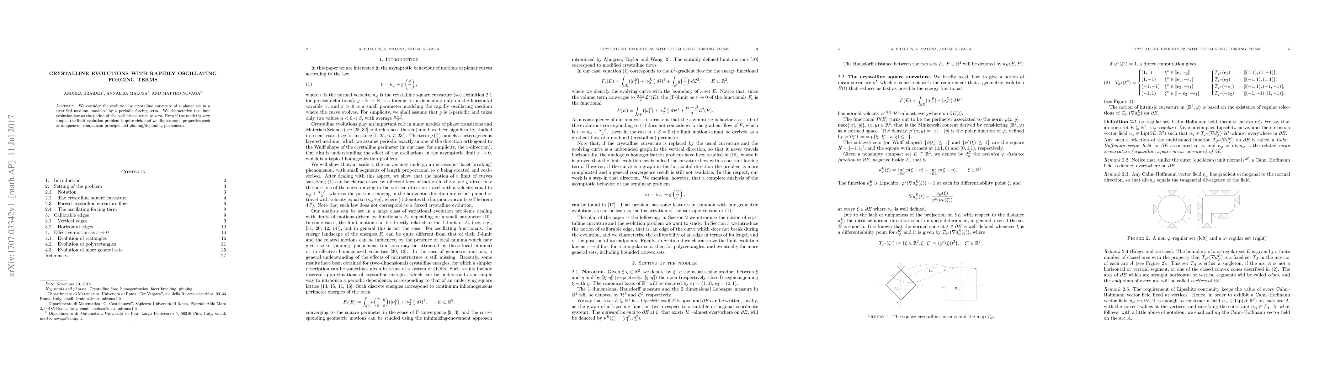 We consider the evolution by crystalline curvature of a planar set in a stratified medium, modeled by a periodic forcing term. We characterize the limit evolution law as the period of the oscillations tends to zero. Even if the model is very simple, the limit evolution problem is quite rich, and we discuss some properties such as uniqueness, comparison principle and pinning/depinning phenomena.