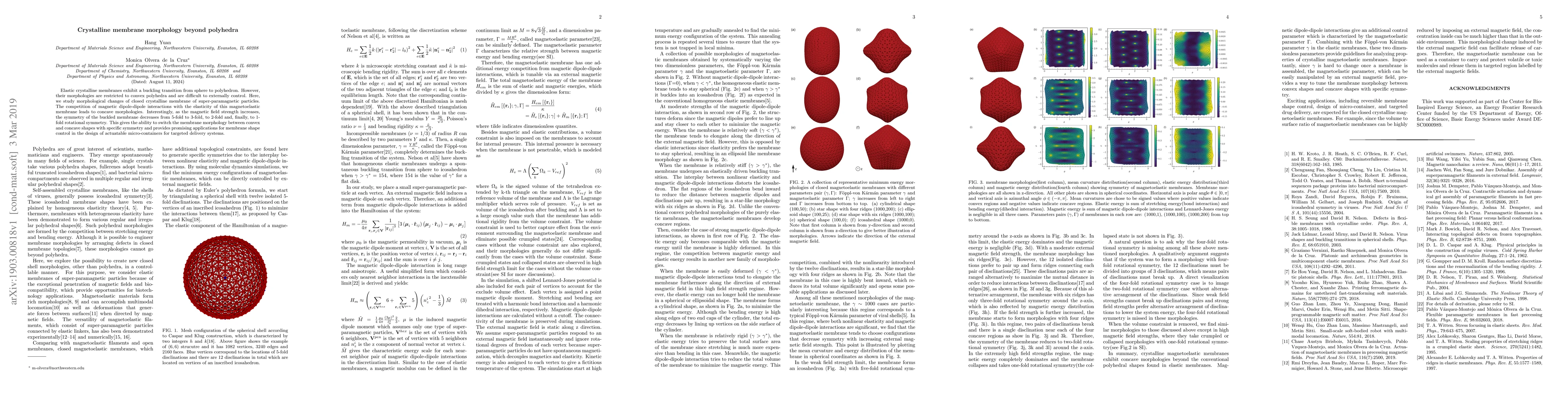 This paper explores the morphological changes in crystalline membranes composed of super-paramagnetic particles, revealing that magnetic dipole-dipole interactions can induce concave shapes beyond convex polyhedra. The study demonstrates a tunable symmetry transition from 5-fold to 1-fold rotational symmetry with varying magnetic field strength, offering potential for precise control in micro-container design for targeted delivery systems.