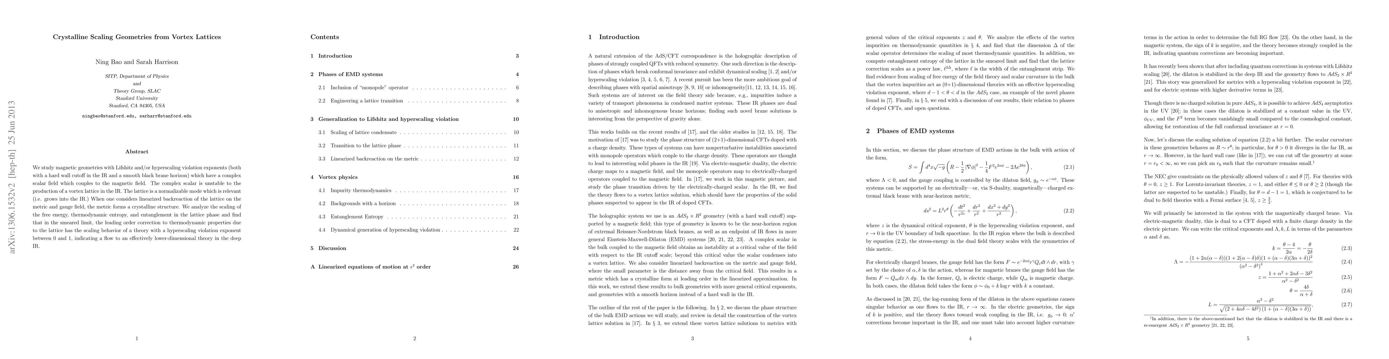 This paper investigates magnetic geometries with complex scalar fields that develop vortex lattices in the infrared, leading to a crystalline scaling geometry. The study finds that the vortex lattice induces a scaling behavior in thermodynamic properties, suggesting a flow to a lower-dimensional effective theory in the deep infrared.