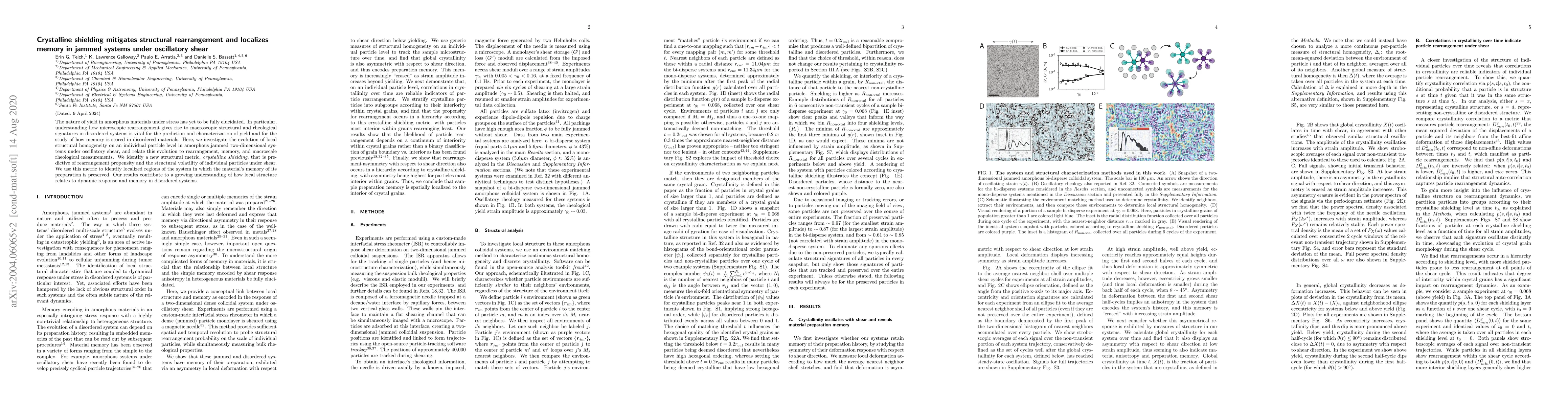 The nature of yield in amorphous materials under stress has yet to be fully elucidated. In particular, understanding how microscopic rearrangement gives rise to macroscopic structural and rheological signatures in disordered systems is vital for the prediction and characterization of yield and for the study of how memory is stored in disordered materials. Here, we investigate the evolution of local structural homogeneity on an individual particle level in amorphous jammed two-dimensional systems under oscillatory shear, and relate this evolution to rearrangement, memory, and macroscale rheological measurements. We identify a new structural metric, crystalline shielding, that is predictive of rearrangement propensity and the structural volatility of individual particles under shear. We use this metric to identify localized regions of the system in which the material's memory of its preparation is preserved. Our results contribute to a growing understanding of how local structure relates to dynamic response and memory in disordered systems.
