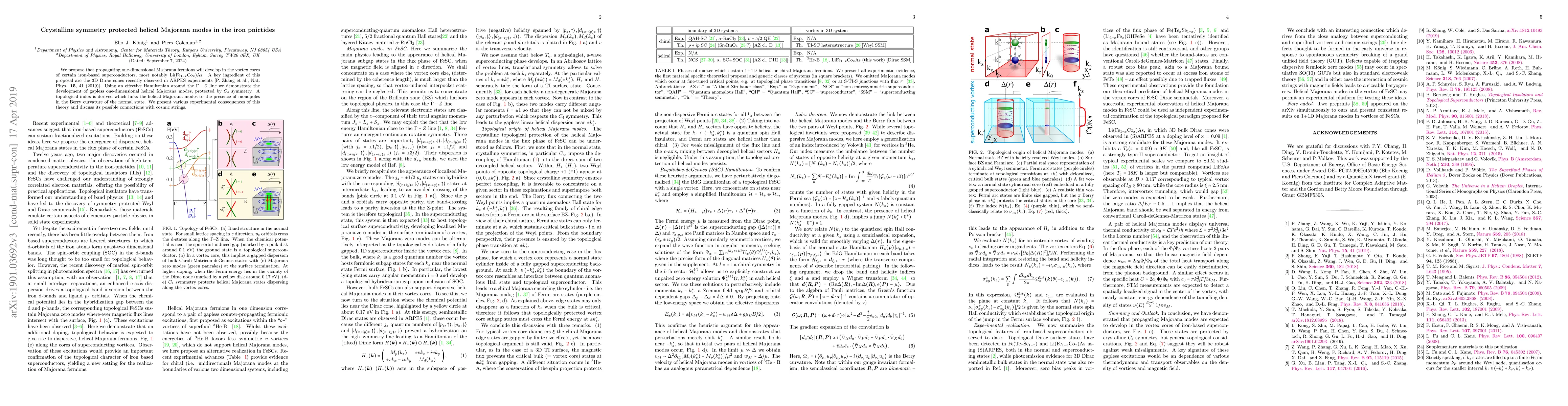 The paper proposes that helical Majorana fermions emerge in vortex cores of iron-pnictide superconductors, particularly Li(Fe$_{1-x}$Co$_x$)As, due to 3D Dirac cones observed in ARPES experiments. These Majorana modes are symmetry-protected and linked to monopoles in the Berry curvature, with implications potentially extending to cosmic strings.