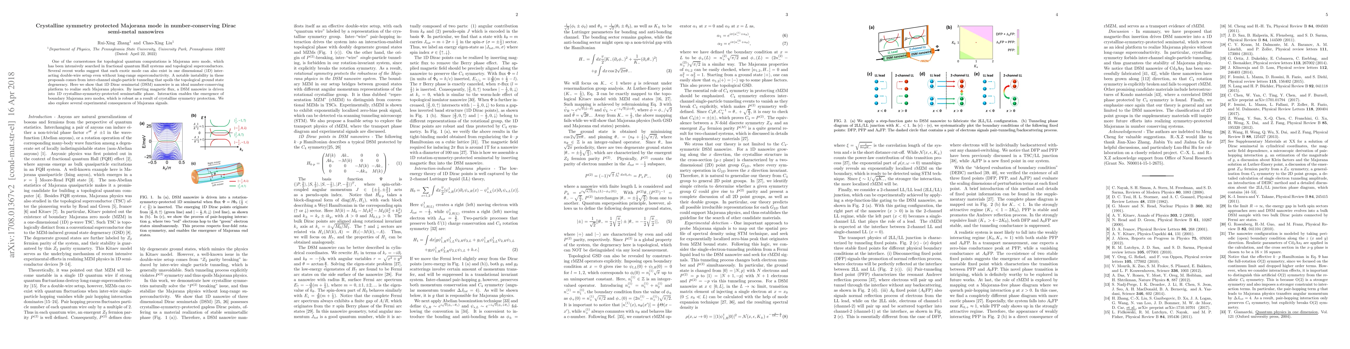 This paper demonstrates that a 1D Dirac semimetal nanowire can realize crystalline symmetry-protected Majorana zero modes, offering a robust platform for topological quantum computation. The robustness of these modes is maintained by the protection of crystalline symmetry against interchannel tunneling.