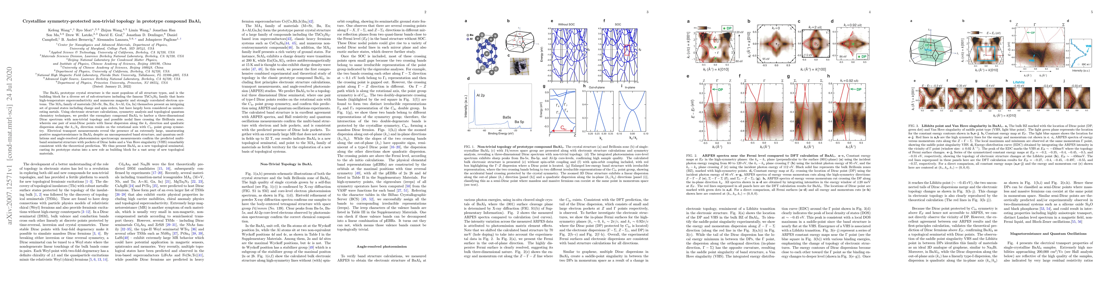The BaAl$_4$ prototype crystal structure is the most populous of all structure types, and is the building block for a diverse set of sub-structures including the famous ThCr$_2$Si$_2$ family that hosts high-temperature superconductivity and numerous magnetic and strongly correlated electron systems. The MA$_4$ family of materials (M=Sr, Ba, Eu; A=Al, Ga, In) themselves present an intriguing set of ground states including charge and spin orders, but have largely been considered as uninteresting metals. Using electronic structure calculations, symmetry analysis and topological quantum chemistry techniques, we predict the exemplary compound BaAl$_4$ to harbor a three-dimensional Dirac spectrum with non-trivial topology and possible nodal lines crossing the Brillouin zone, wherein one pair of semi-Dirac points with linear dispersion along the $k_z$ direction and quadratic dispersion along the $k_x/k_y$ direction resides on the rotational axis with $C_{4v}$ point group symmetry. Electrical transport measurements reveal the presence of an extremely large, unsaturating positive magnetoresistance in BaAl$_4$ despite an uncompensated band structure, and quantum oscillations and angle-resolved photoemission spectroscopy measurements confirm the predicted multiband semimetal structure with pockets of Dirac holes and a Van Hove singularity (VHS) remarkably consistent with the theoretical prediction. We thus present BaAl$_4$ as a new topological semimetal, casting its prototype status into a new role as building block for a vast array of new topological materials.