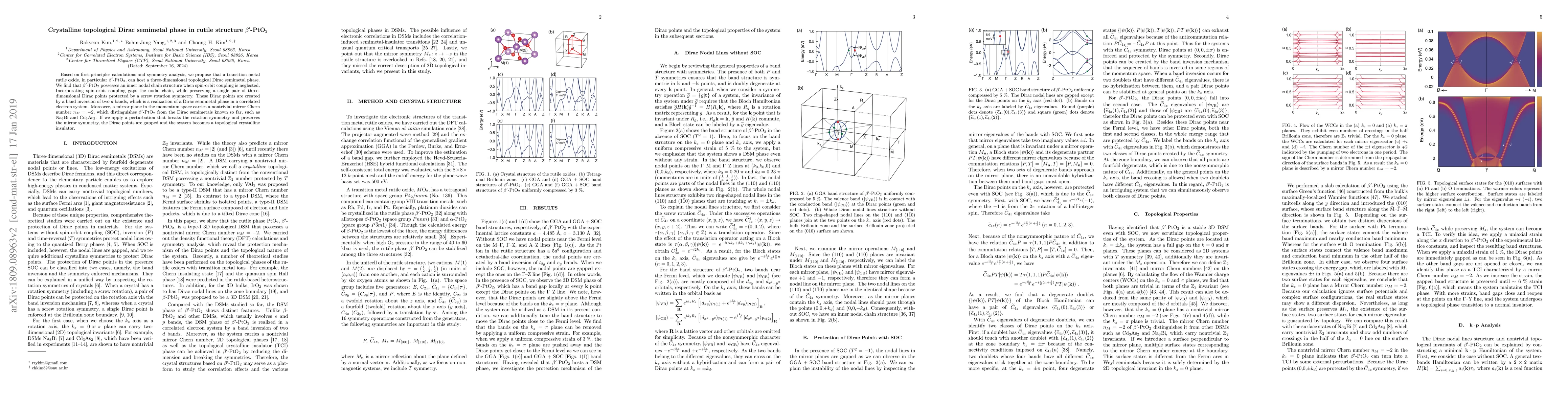 This paper proposes that $\beta'$-PtO$_2$ exhibits a crystalline topological Dirac semimetal phase with a unique linked nodal ring structure and a protected Dirac point. The system can transition to a topological crystalline insulator upon breaking rotation symmetry.