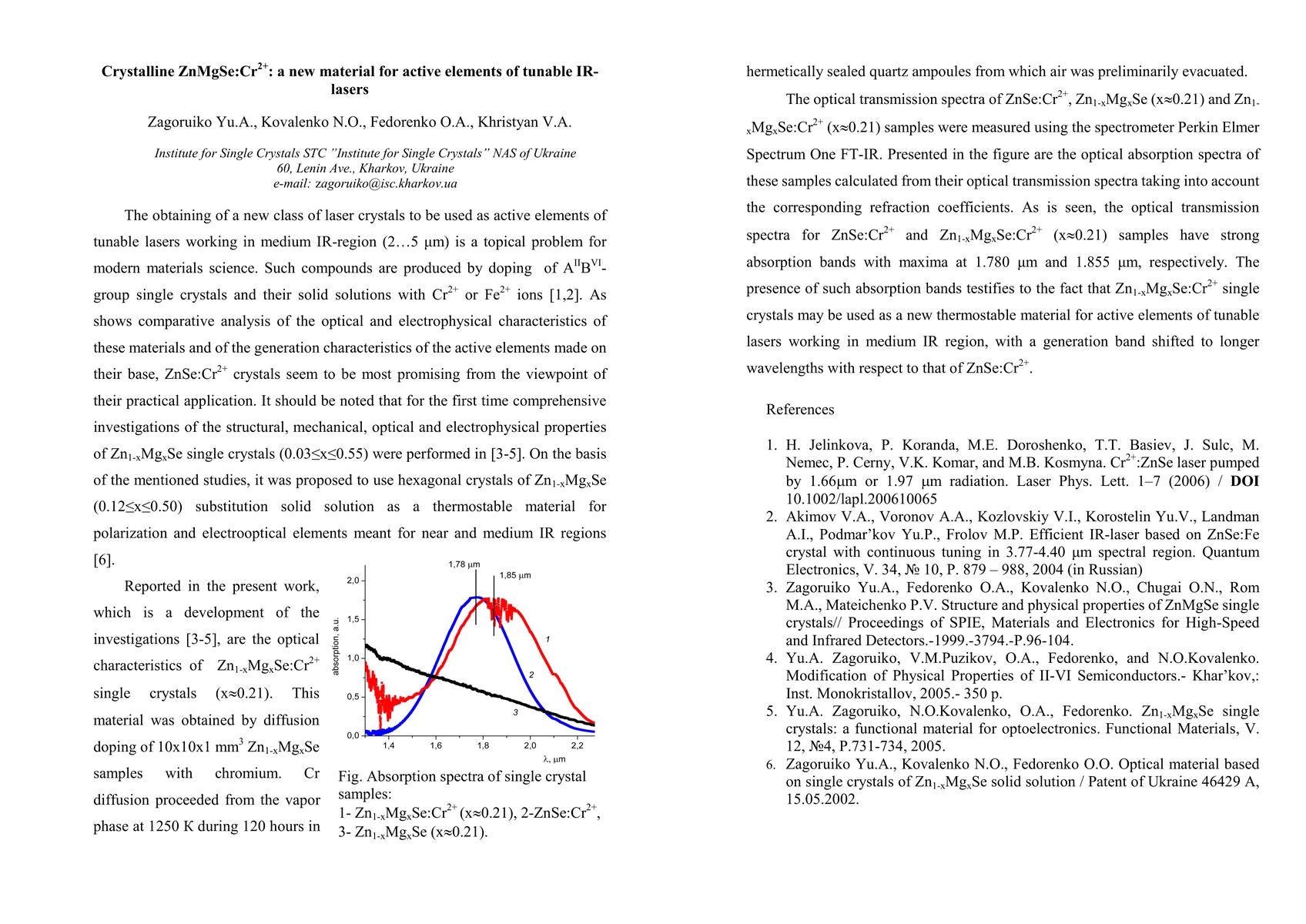 Summary: Zn1-xMgxSe:Cr2+ single crystals have been developed as a thermostable material for tunable IR-lasers, with the absorption band position of Cr2+ ions in a wurtzite-type Zn0.8Mg0.2Se matrix identified. This new material shows promise for active laser elements.