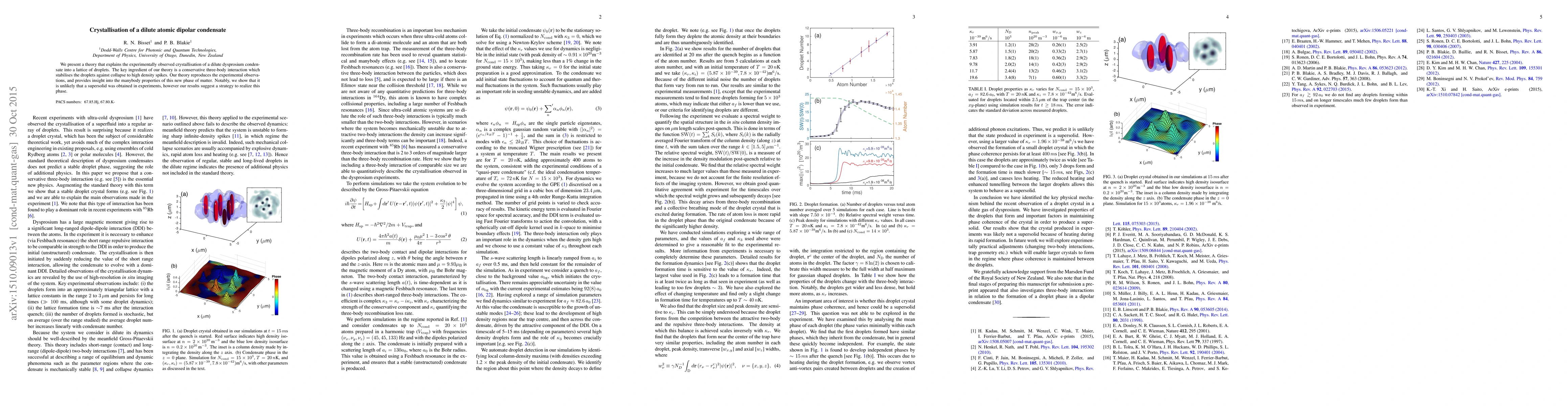 We present a theory that explains the experimentally observed crystallisation of a dilute dysprosium condensate into a lattice of droplets. The key ingredient of our theory is a conservative three-body interaction which stabilises the droplets against collapse to high density spikes. Our theory reproduces the experimental observations, and provides insight into the manybody properties of this new phase of matter. Notably, we show that it is unlikely that a supersolid was obtained in experiments, however our results suggest a strategy to realize this phase.