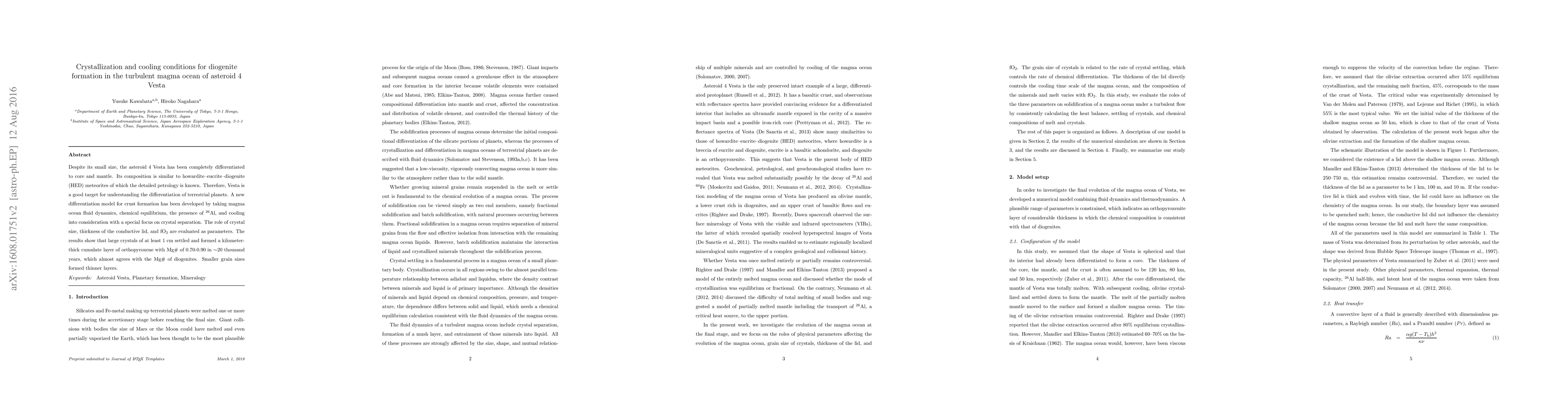 This paper develops a new model for crust formation on asteroid 4 Vesta, focusing on the crystallization and cooling conditions that led to the formation of diogenites. It finds that large crystals settled over 20,000 years to form a thick orthopyroxene cumulate layer, closely matching the Mg$\#$ of diogenites.