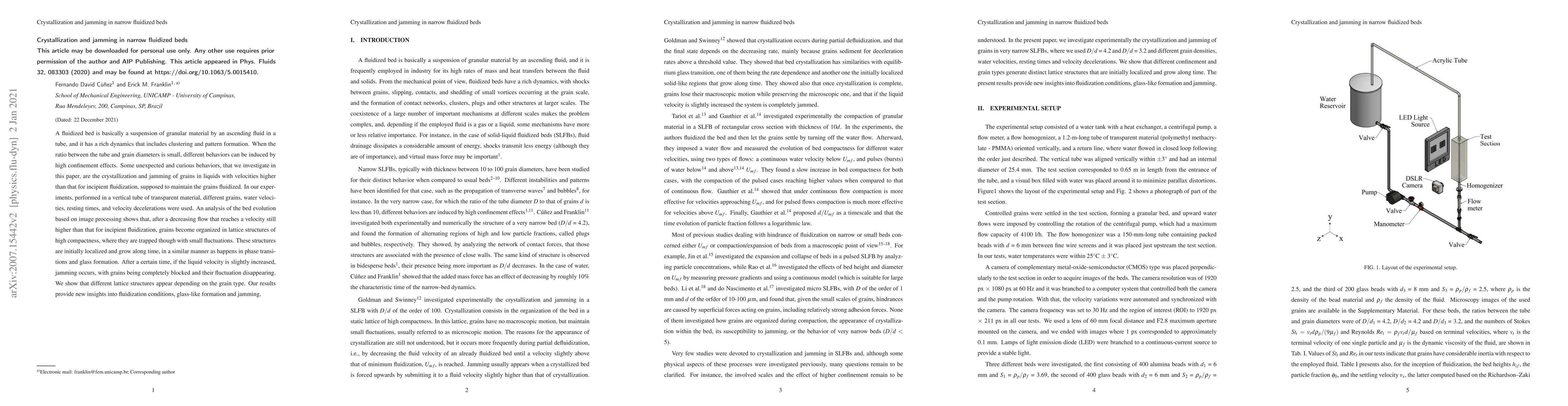 This paper investigates the crystallization and jamming phenomena in narrow fluidized beds under high confinement effects, revealing the formation of lattice structures and complete blockage of grains despite fluid velocities higher than incipient fluidization. The study highlights the influence of different grain types on the observed lattice structures and provides new insights into fluidization dynamics and jamming.