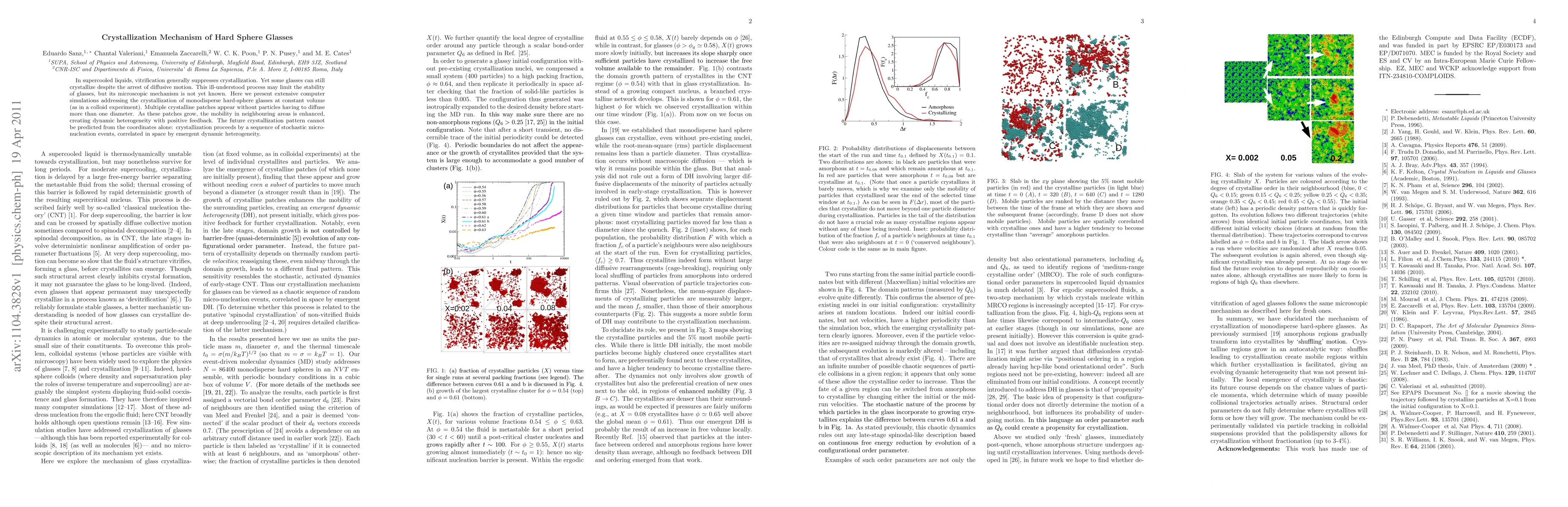 This paper explores the crystallization mechanism in hard-sphere glasses through extensive computer simulations, revealing that crystallization occurs via stochastic micro-nucleation events driven by emergent dynamic heterogeneity, rather than through particle diffusion. The findings suggest that the future crystallization pattern is unpredictable based on particle coordinates alone.
