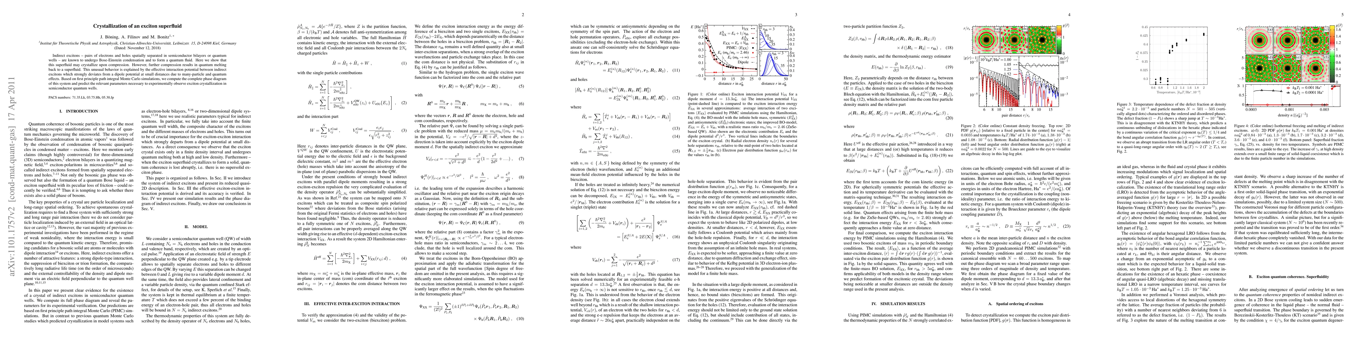This paper demonstrates that indirect excitons in semiconductor bilayers can crystallize under compression, transitioning back to a superfluid upon further compression, due to complex effective interaction potentials. First principle simulations predict the phase diagram and parameters for observing this phenomenon experimentally.