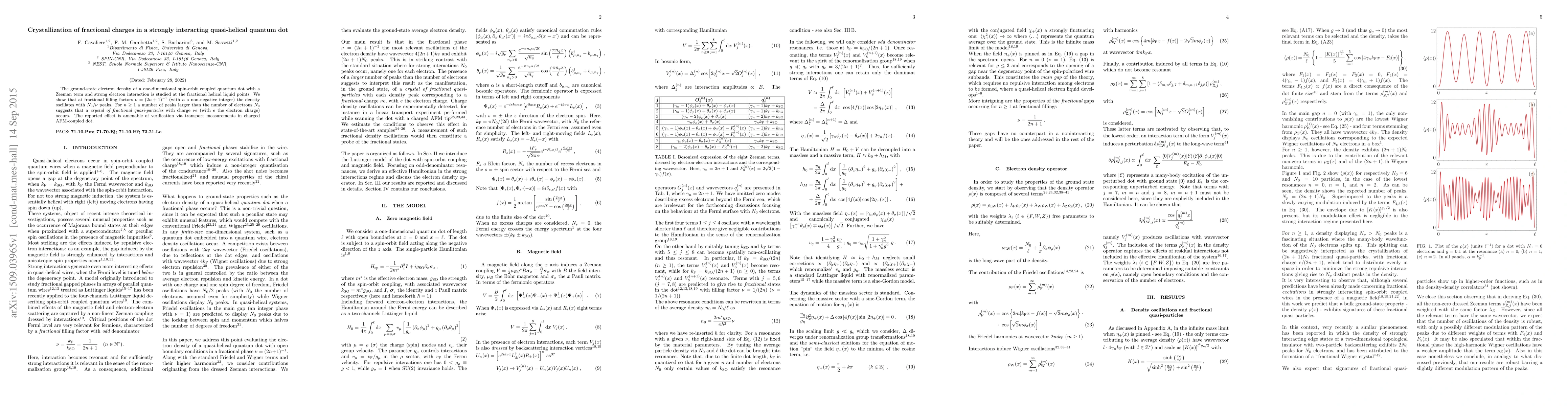 This paper investigates the ground-state electron density in a one-dimensional quantum dot under strong electron interactions, revealing that at fractional filling factors, a crystal of fractional quasi-particles with fractional charge emerges. This effect could be confirmed through transport measurements in a charged AFM-coupled dot.