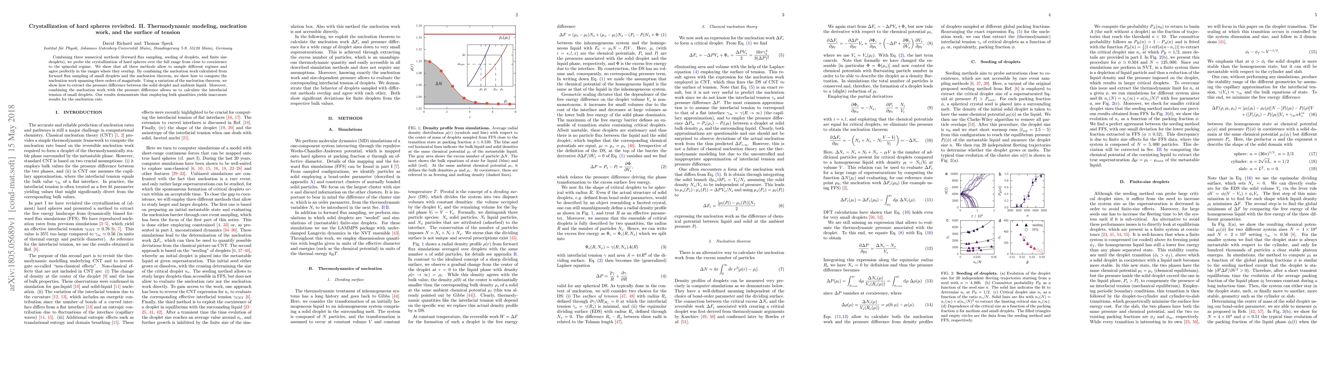 Combining three numerical methods (forward flux sampling, seeding of droplets, and finite size droplets), we probe the crystallization of hard spheres over the full range from close to coexistence to the spinodal regime. We show that all three methods allow to sample different regimes and agree perfectly in the ranges where they overlap. By combining the nucleation work calculated from forward flux sampling of small droplets and the nucleation theorem, we show how to compute the nucleation work spanning three orders of magnitude. Using a variation of the nucleation theorem, we show how to extract the pressure difference between the solid droplet and ambient liquid. Moreover, combining the nucleation work with the pressure difference allows us to calculate the interfacial tension of small droplets. Our results demonstrate that employing bulk quantities yields inaccurate results for the nucleation rate.
