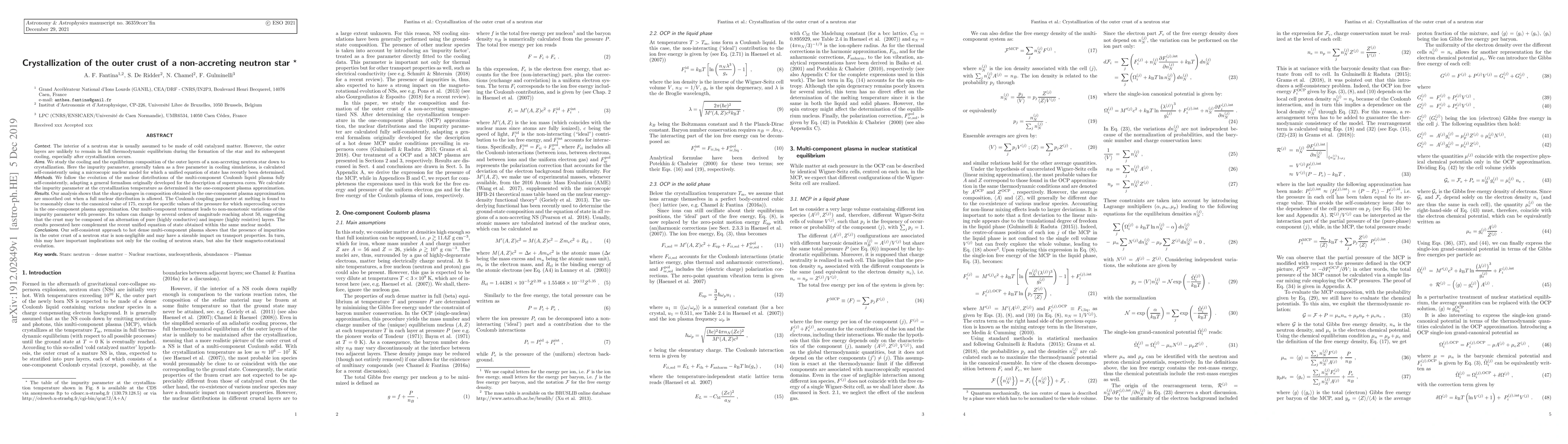 The interior of a neutron star (NS) is usually assumed to be made of cold catalyzed matter. However, the outer layers are unlikely to remain in full equilibrium during the formation of the star and its cooling, especially after crystallization. We study the cooling and equilibrium composition of the outer layers of a NS down to crystallization. Here the impurity parameter, usually a free parameter in cooling simulations, is calculated self-consistently using a microscopic model for which a unified equation of state has recently been determined. We follow the evolution of the nuclear distributions of the multi-component Coulomb liquid plasma (MCP) fully self-consistently, adapting a general formalism originally developed for the description of supernova cores. We calculate the impurity parameter at the crystallization as determined in the one-component plasma (OCP) approximation. Our analysis shows that the sharp changes in composition obtained in the OCP approximation are smoothed out when a full nuclear distribution is allowed. The Coulomb coupling parameter at melting is found to be reasonably close to the canonical value of 175, except for specific pressures for which supercooling occurs in the OCP approximation. Our MCP treatment leads to non-monotonic variations of the impurity parameter with pressure. Its values can change by several orders of magnitude reaching about 50, suggesting that the crust may be composed of an alternation of pure (highly conductive) and impure (highly resistive) layers. The results presented here complement the recent unified equation of state obtained with the same model. Our self-consistent approach to hot MCP shows that the presence of impurities in the outer crust of a NS is non-negligible and may have a sizeable impact on transport properties. In turn, this may have important implications for the cooling of NS and their magneto-rotational evolution.