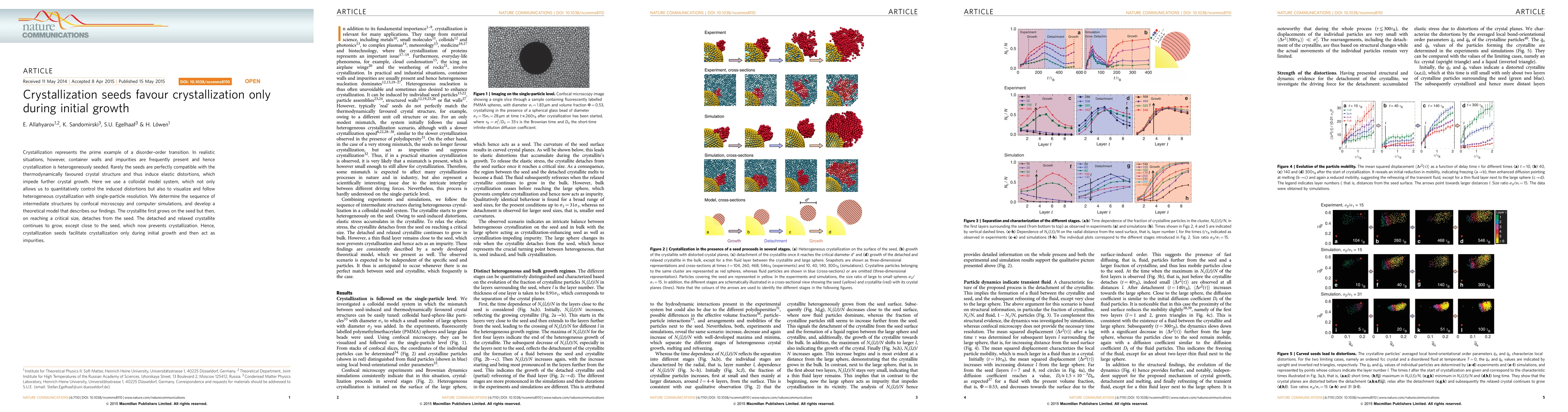 Crystallization represents the prime example of a disorder order transition. In realistic situations, however, container walls and impurities are frequently present and hence crystallization is heterogeneously seeded. Rarely the seeds are perfectly compatible with the thermodynamically favoured crystal structure and thus induce elastic distortions, which impede further crystal growth. Here we use a colloidal model system, which not only allows us to quantitatively control the induced distortions but also to visualize and follow heterogeneous crystallization with single-particle resolution. We determine the sequence of intermediate structures by confocal microscopy and computer simulations, and develop a theoretical model that describes our findings. The crystallite first grows on the seed but then, on reaching a critical size, detaches from the seed. The detached and relaxed crystallite continues to grow, except close to the seed, which now prevents crystallization. Hence, crystallization seeds facilitate crystallization only during initial growth and then act as impurities.